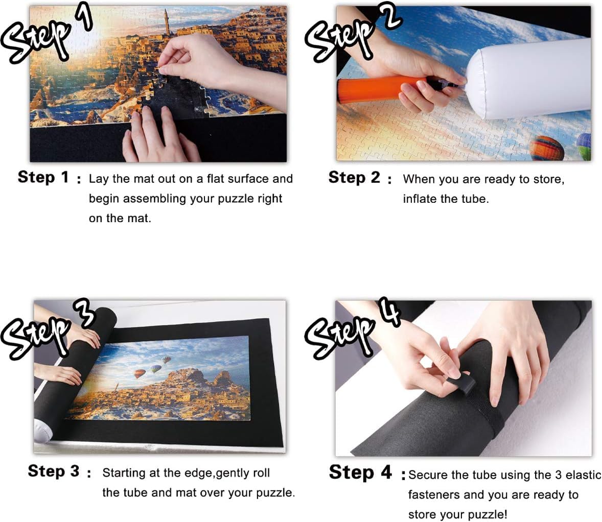 - 【Easy To Use It】Our puzzle saver mat kit is optimized for easy use and convenience. That's why it is designed to be packed in a single minute with 4 steps: first inflate the tube - then roll up the puzzle mat - after that tie up three bands - finally put it into the bag. That's it! Pretty easy right?!