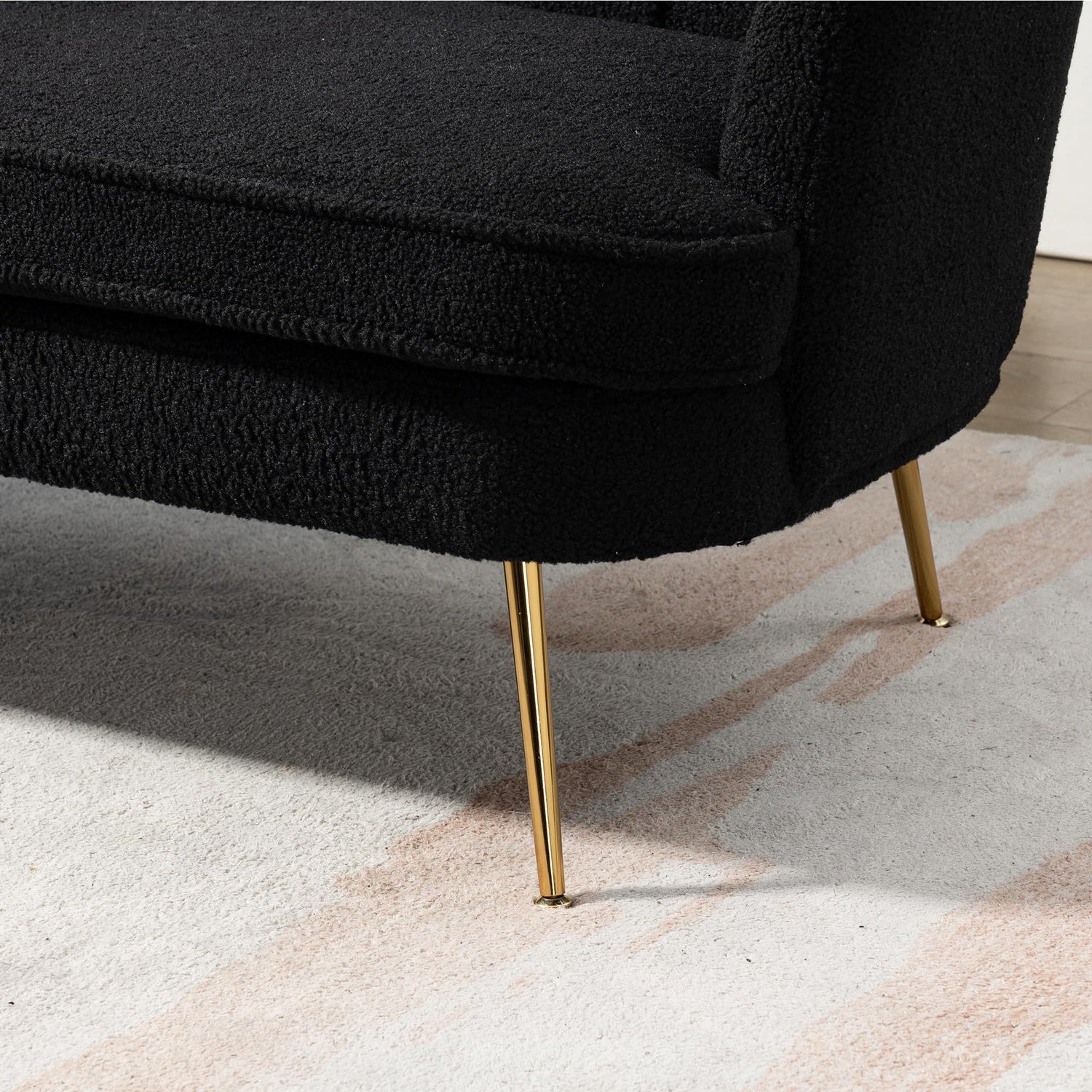 - Comfort Beyond Compare;The black boucle mini sofa couch fabric's elasticity and skin-friendly nature ensure a seating experience that's not only comfortable but also immensely enjoyable. Spend hours on this loveseat, relaxing and unwinding without any discomfort