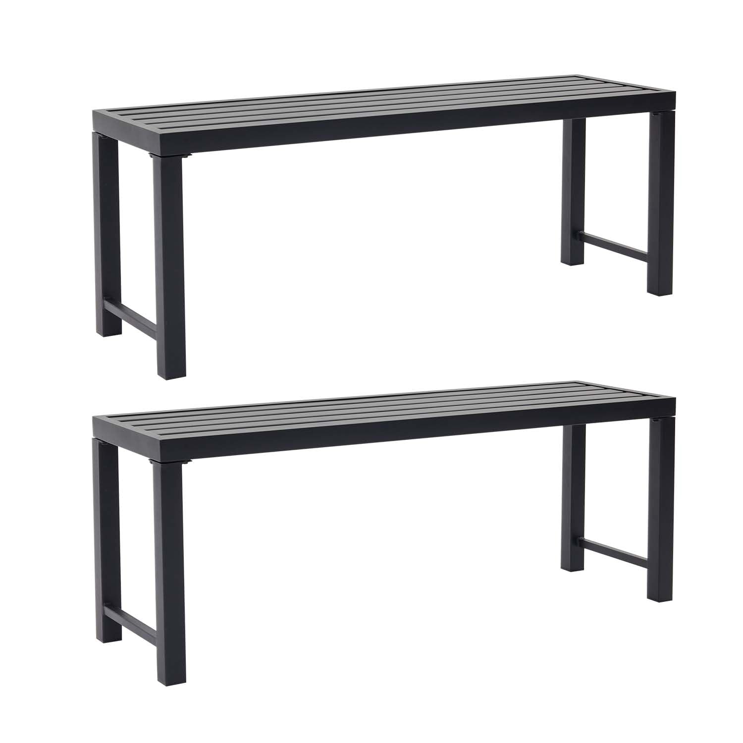 Black Outdoor Backless Bench for Garden, Set of 2, Metal Outdoor Bench Weatherproof, Patio Benches for Outdoors, Benches Seat for Backyard, Porch, Plant Stand and Holder