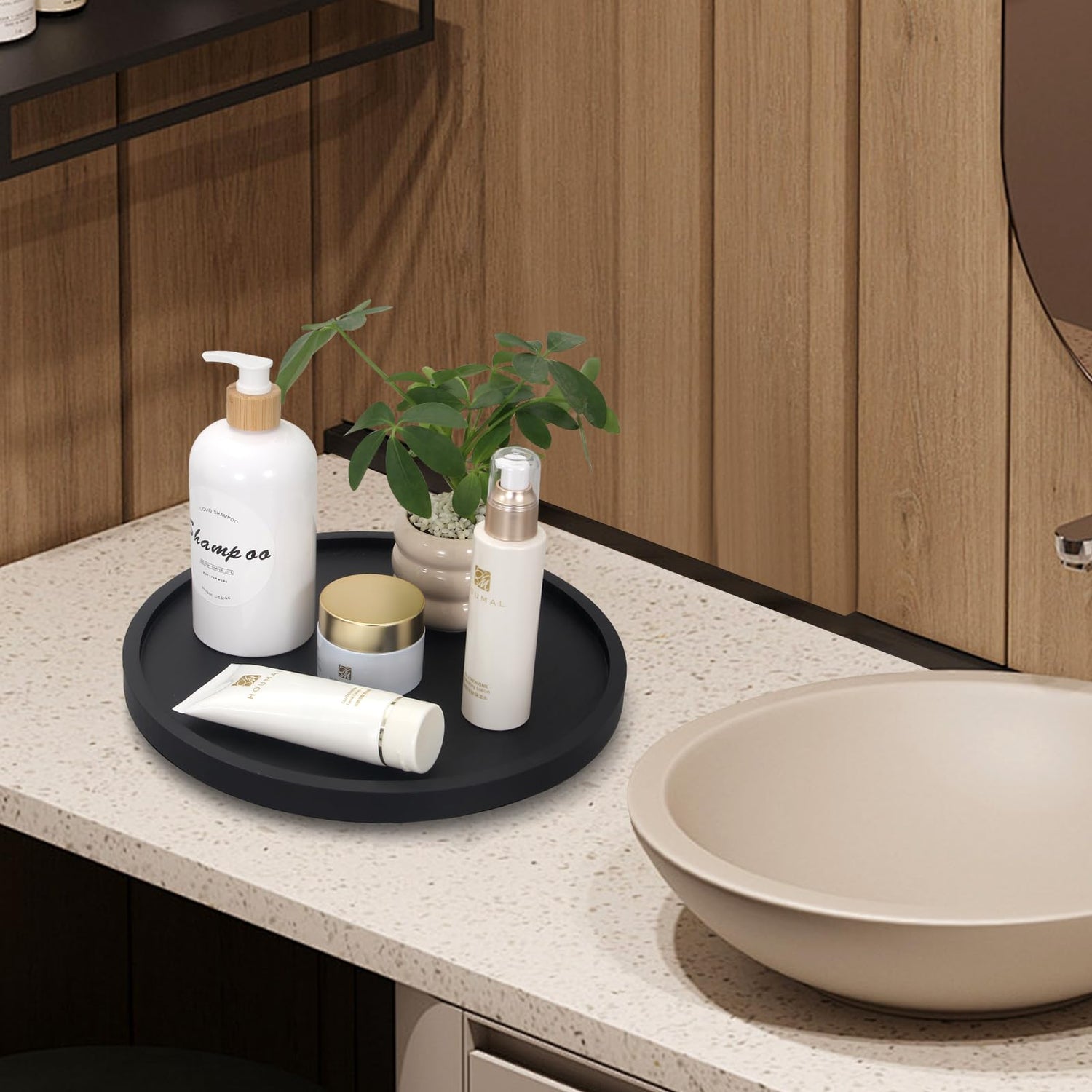 Black Wood Lazy Susan Cabinet Turntable Round Bathroom Vanity Organizer Tray Decorative 12" Wooden Lazy Susan for Dining Table Top Kitchen Sink Countertop Large Lazy Susan Rotating Tray Spice Rack