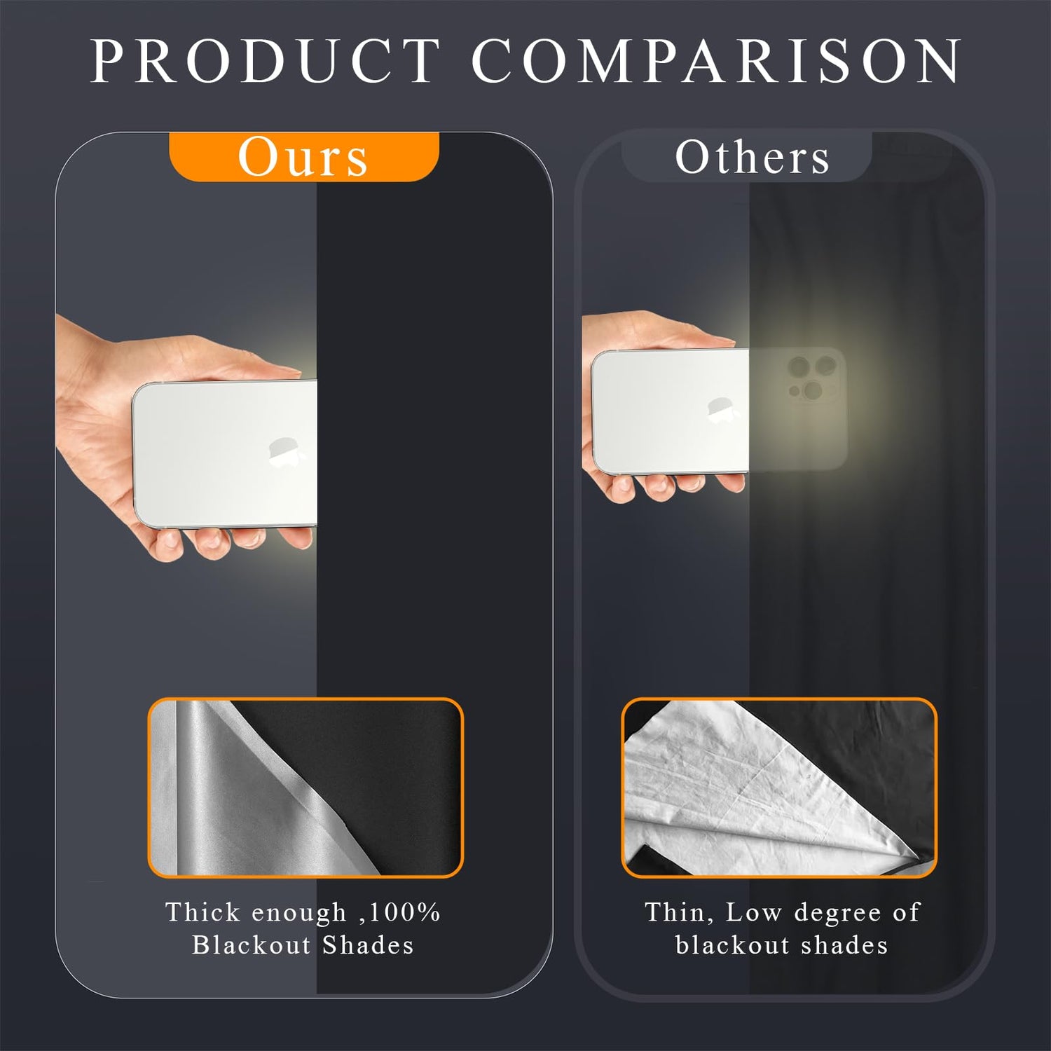 - 【420D Oxford cloth & 100% Blackout Material】Our portable blackout curtains are thick but soft fabric for blocking sunlight and UV rays. Besides, the grey fabric behind the blackout shades, reducing heat. Offering you a real dark and privacy environment, perfect for baby’s nursery room and night shift worker, creating a cozy sleeping atmosphere.