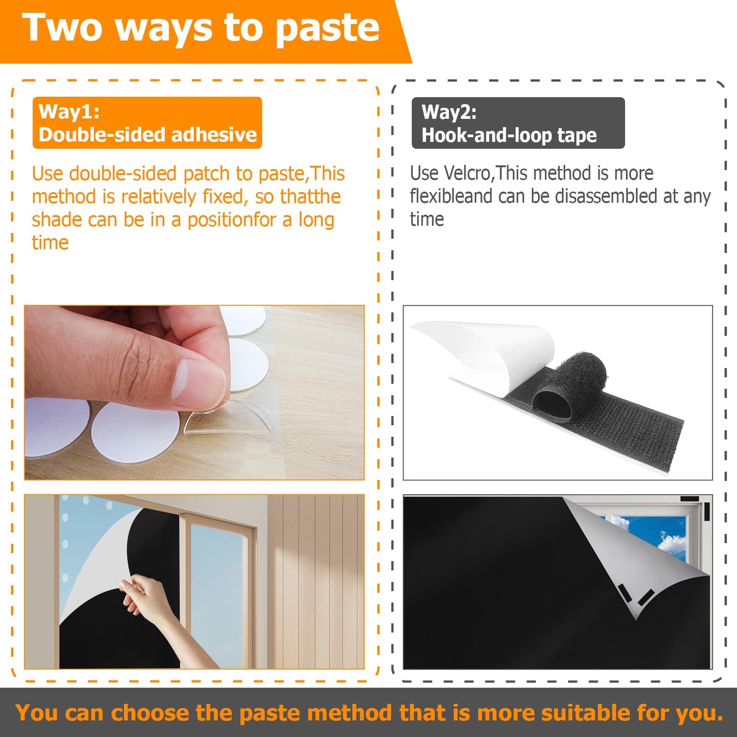 - 【CARE TIPS】Fresh out of the package,Air the curtain in a well-ventilated area for 1-3 days to eliminate any odor.Smooth out creases with gentle ironing on the black side (low heat only). Package includes: 1 blackout curtain, 18 nano-adhesive strips, 20Velcro pairs, and 1 travel pouch.Missing parts? Reach out to us anytime—we’re here to help!