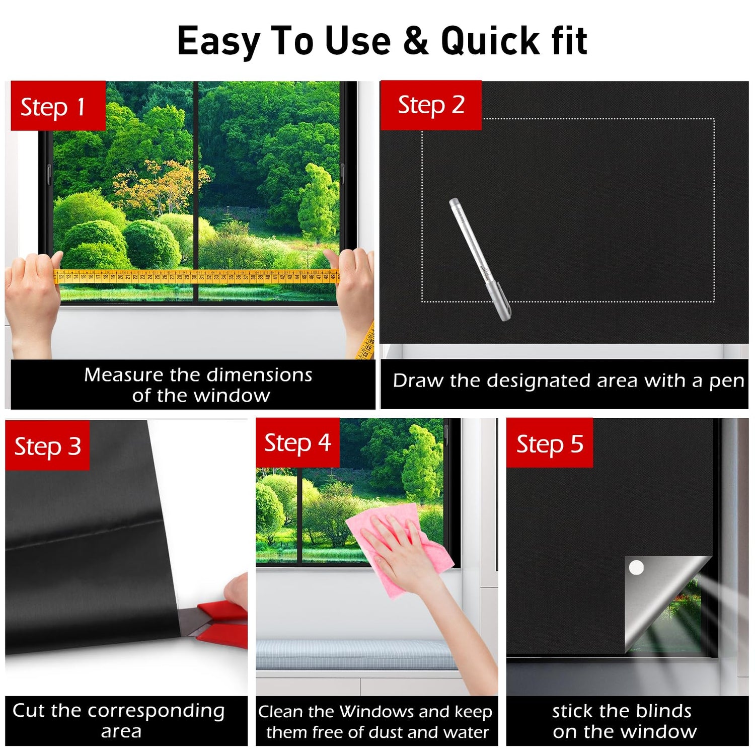 - 【QUICK & EASY INSTALLATION】 Install in 3 simple steps—Measure, Cut, Stick.The entire process takes less than 10 minutes!The included nano-adhesive strips offer ultra-strong hold and leave zero residue when removed.Note: Clean and dry windows are essential for best adhesion.