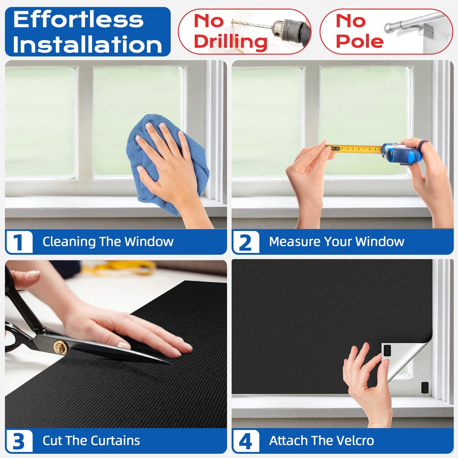 - 👍 Easy Installation: Our 39" blackout window covers come with strong adhesive hooks & loops strips that is residue-free and can withstand high temperatures, making installation quick and easy. No drilling or special tools required. Simply measure, cut, and apply the hooks & loops strips to your window frame or glass.