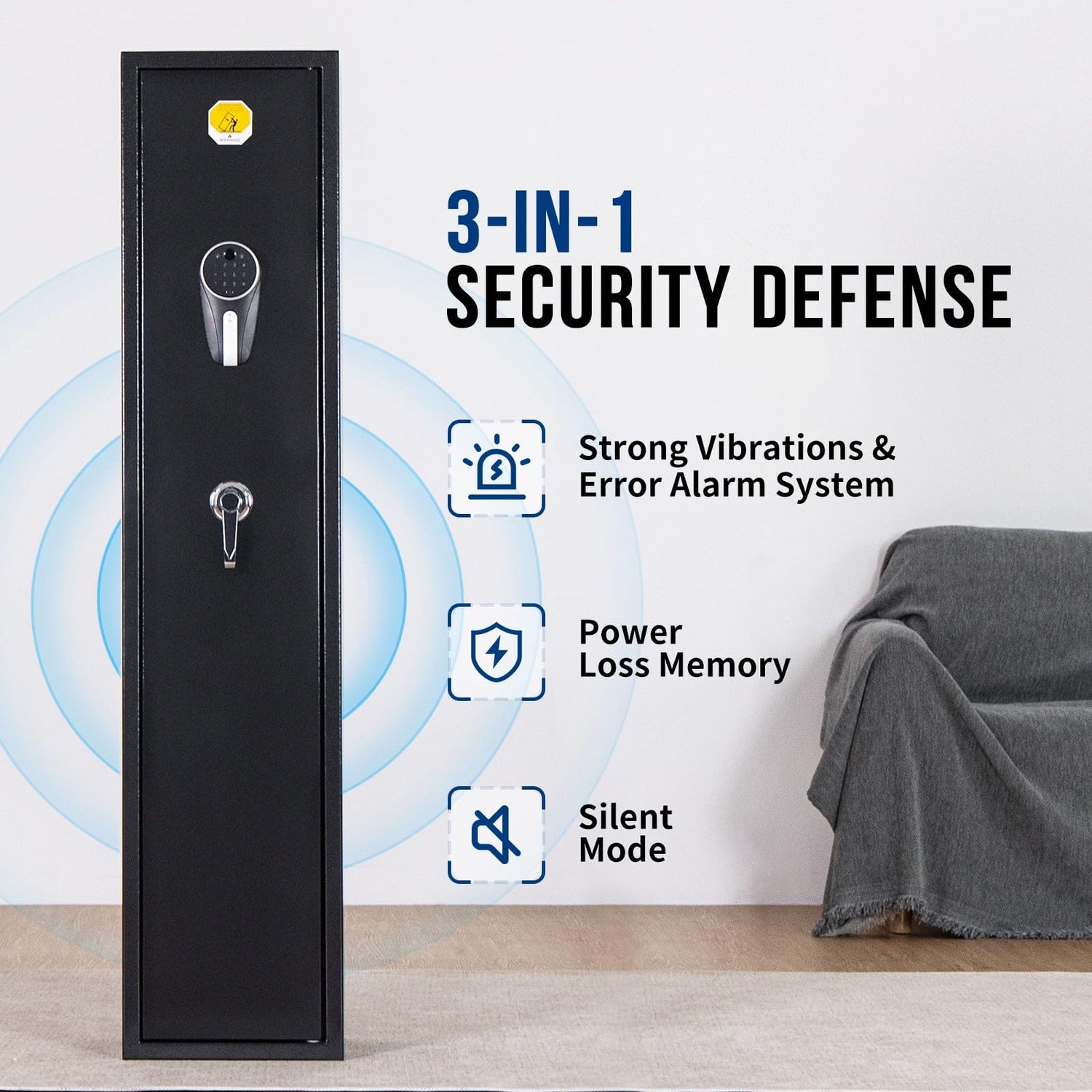 BlackSmith 5 Long Gun Safe Biometric Rifles Safe for Home Rifles and Pistols Quick Access Fingerprint Gun Cabinet Lockbox 2 Rifle Gun Rack Dual Alarm Password Memory Function 16 Gauge Alloy Steel