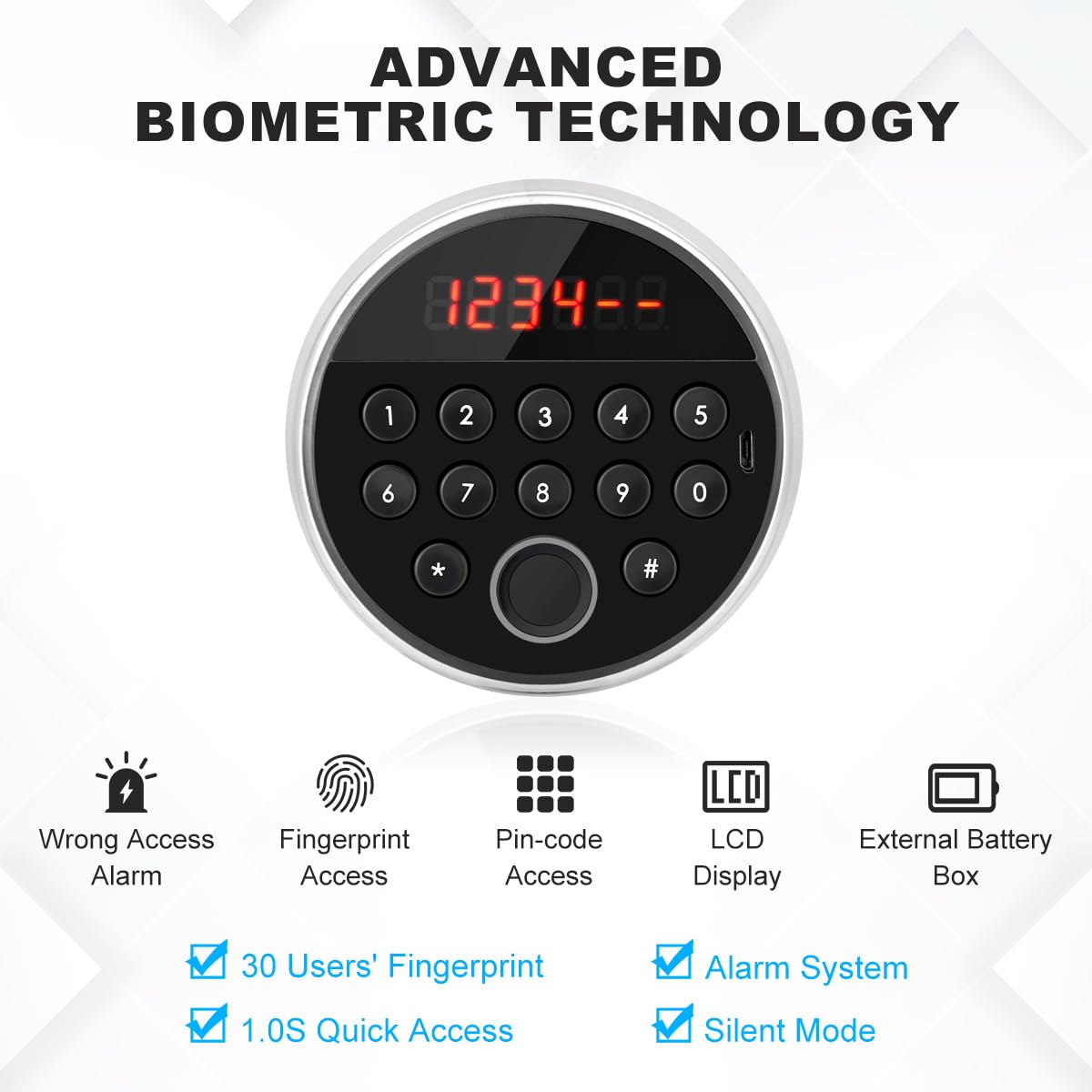 - 3 WAYS TO OPEN: Fingerprint, password or keys. Use your fingerprint for quick access within 1S. It can also be unlocked by either setting a 3-8 digit password or using 2 spare keys. (Please note: Do not store the spare key inside the gun safe). No one is authorized to open the safe by fingerprint before setting.