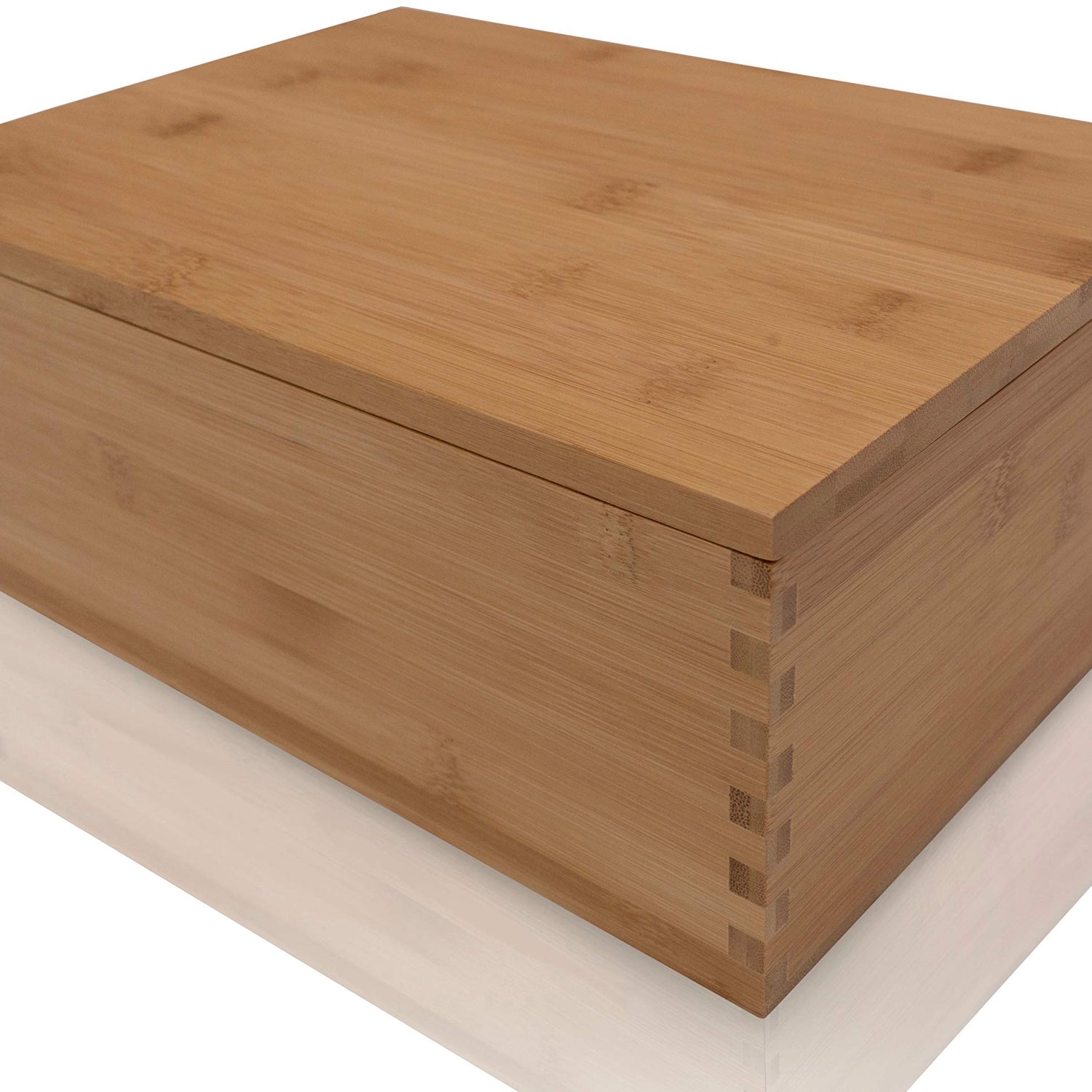 - Handcrafted sustainable bamboo wood, with a light satin, inside and out, to protect the wood. Complete with a lift off lid and dovetail edges to provide a timeless look to fit any room in your house. All wood was sourced from eco friendly and sustainable sources.