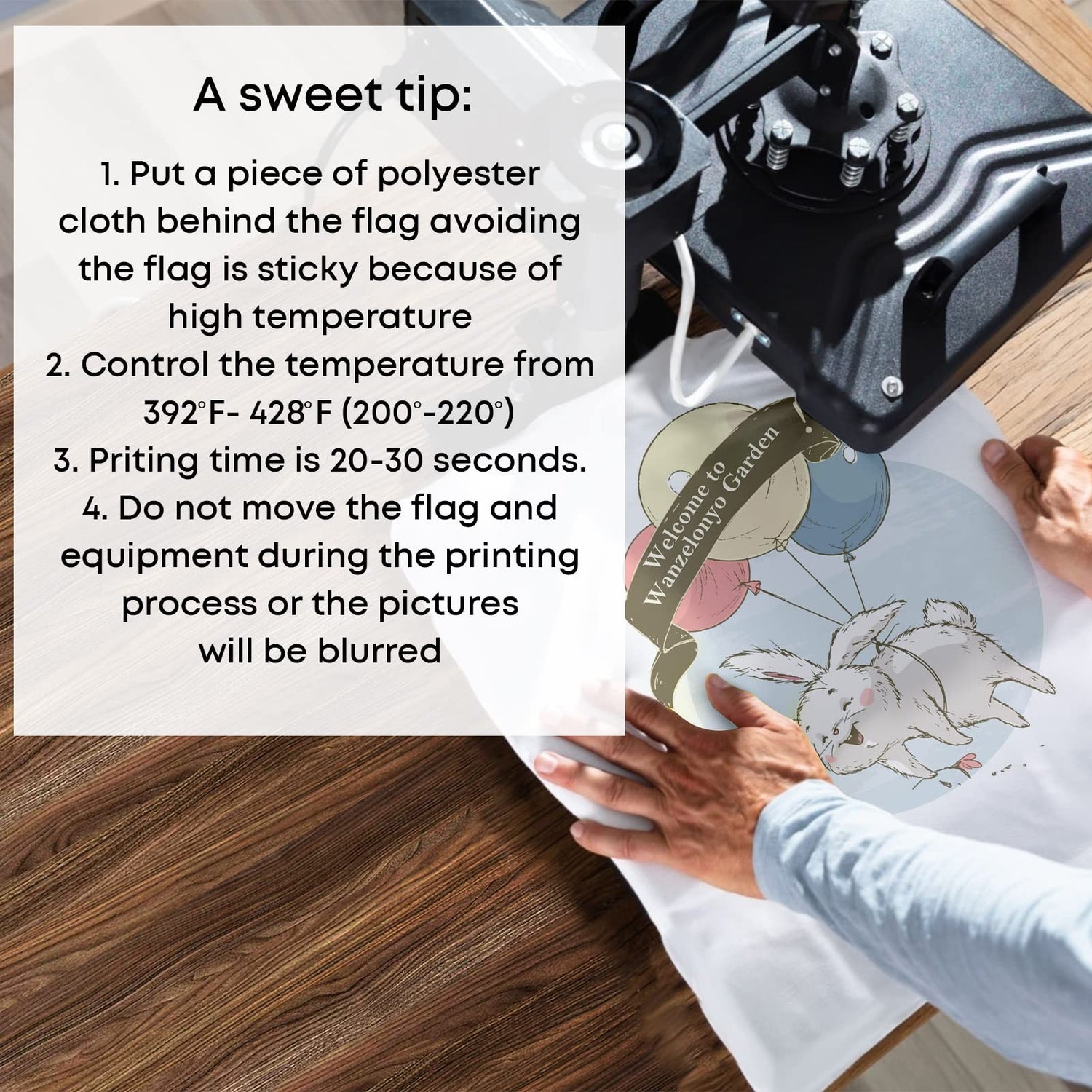 - A SWEET TAP For A GOOD DESIGN: Put a heat transfer paper behind the flag.Control the pressing temperature from 392°F- 428°F.Priting time is 20-30 seconds.Do not move it and equipment during the printing process. Or the pictures will be blurred