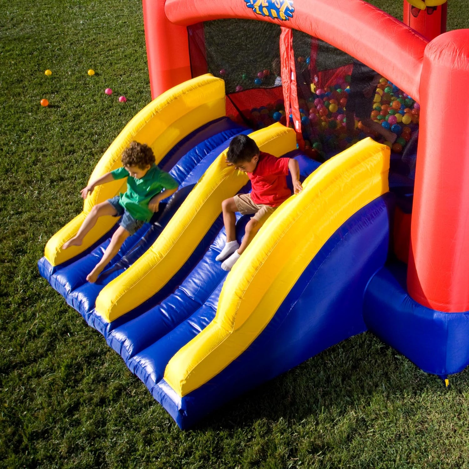 Blast Zone Triple Play Inflatable Combo Bounce House - Massive 16x14 - Blower - Premium Quality - 7 Players - Double Slides