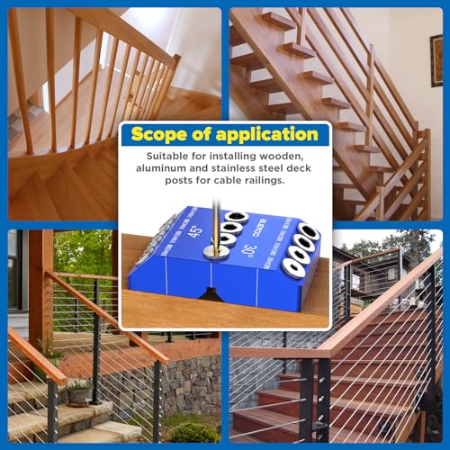 BLEKOO Blue Angled Drill Guide Jig with 4 Bits for Wood Posts & Cable Railing Lag Screw Kit, Durable All Metal Drill Jig for Drilling 30°, 45°, 90°