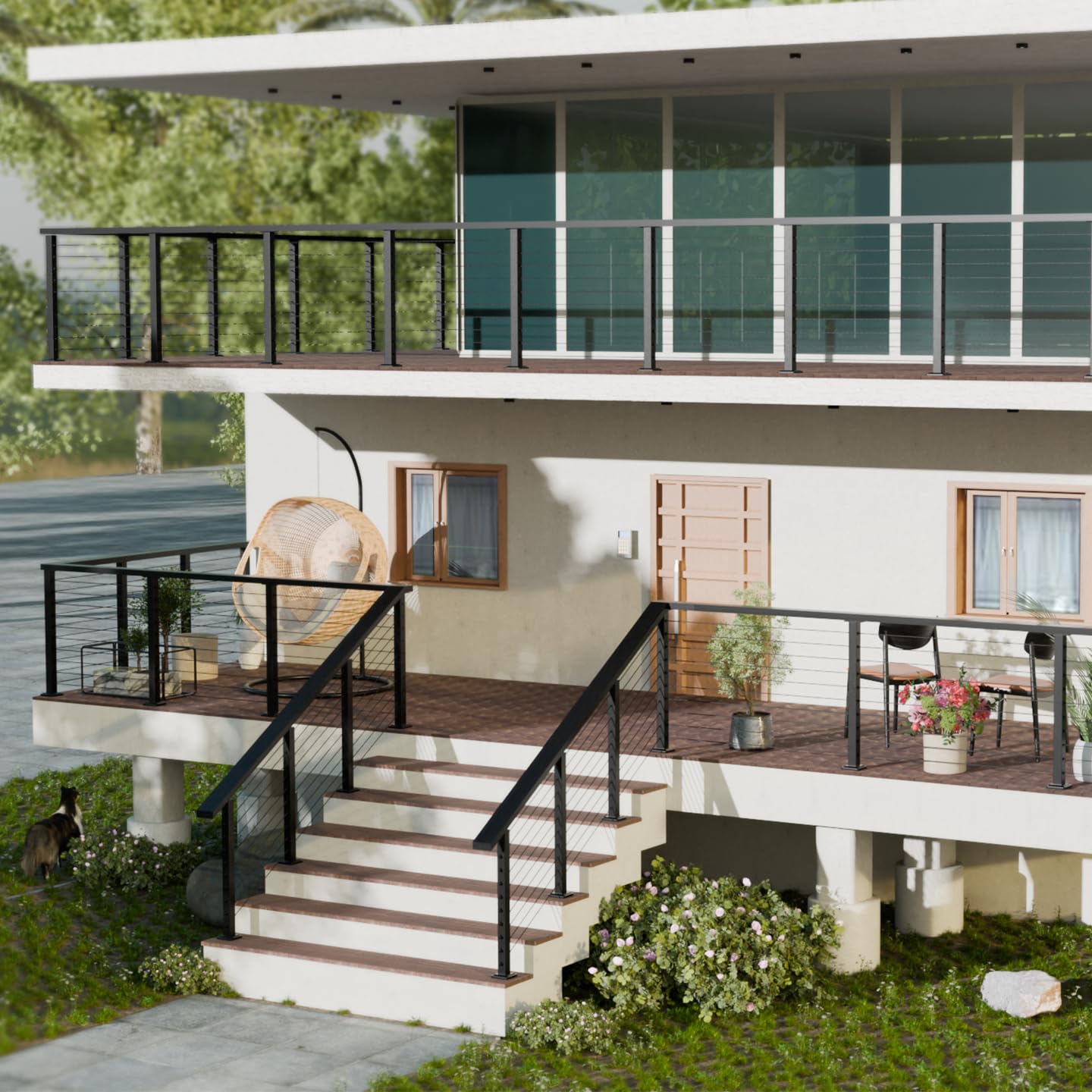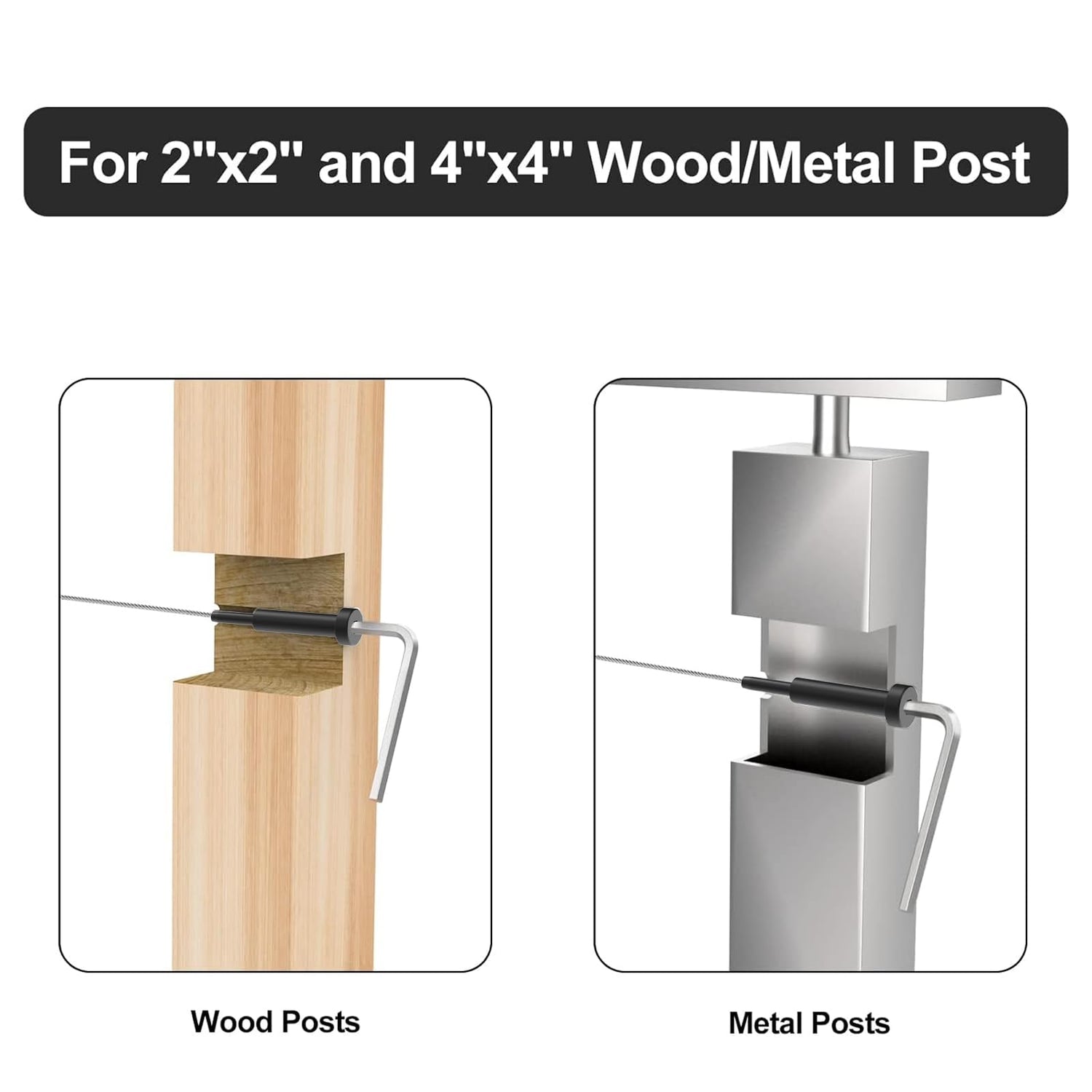 - 【APPLICATIONS】For 3/16 inch black deck cable railing system. It is suitable for 2"x2", 4"x4" wood /metal Posts, level & angle installation. Invisible cable railing kits work by securing one end of a cable wire within the post. This way, no fasteners are visible to the exterior eye. Perfect for installation on exterior decks, marine rigging, or interior applications. When using invisible cable railing system on a stairway or other angle application, we recommend using 3/8 ID 30 degree angle washer:B0CYZQZ6DY.