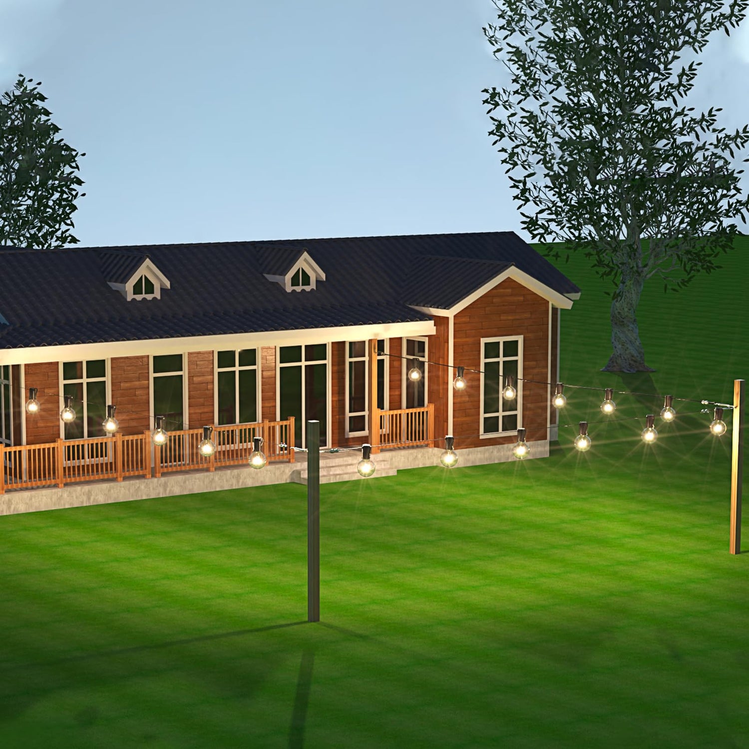 - APPLICATIONS: Black coated stainless cable is easy to hide at night. Our light hanging kit can be used in multiple ways such as hanging string lights for a romantic party, photos or any hanging needed. And you can design different lighting suspension types to enhance the visual effect according to the layout of your yard. Our string light hanging kits is also suitable for Indoor: Hanging photo frames, dry clothes and facilities for sunbathe at day.