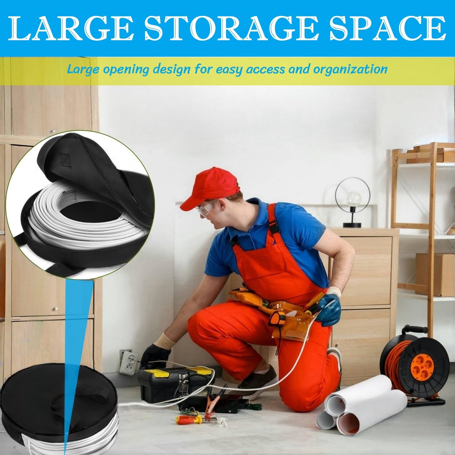 - 【Spacious Cord Storage Bag】: Generous dimensions of Diameter 15.75" x Depth 5.12" offer ample storage space for various items, from Jumper Cables, RV hose, car battery, cords, to Garden Hoses.
