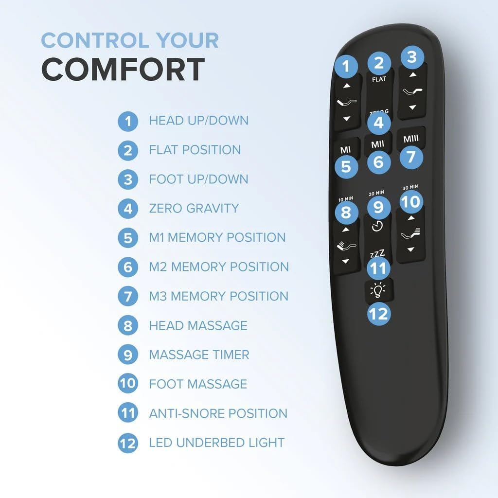 Back-lit Wireless remote - 1 remote for Twin XL/Queen & 2 remotes for King/Cal-King