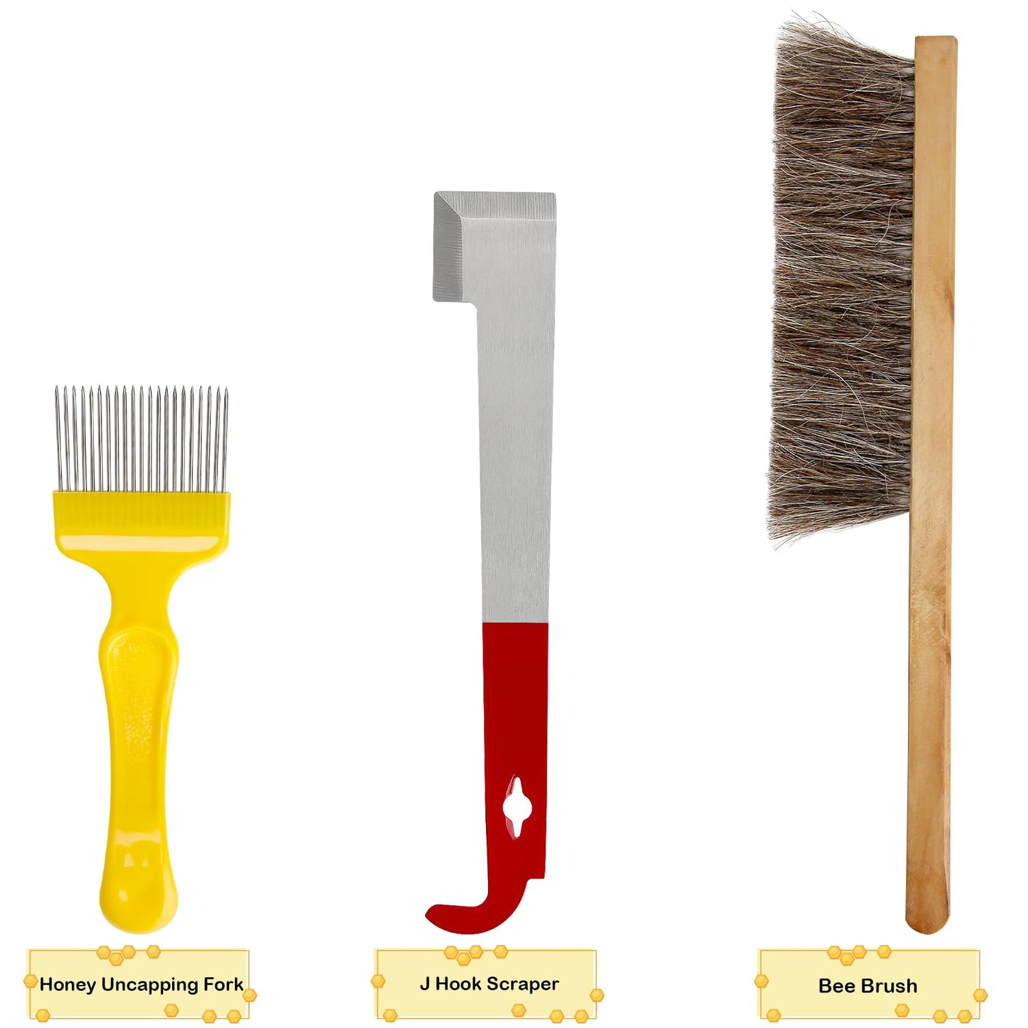 - Package Includes: Bee Smoker, Bee Smoker Fuel, Bee Brush, Frame Grip, J Hook Hive Tool, Bee Feeder, Wire Embedder, Honey Uncapping Fork, Queen Bee Cage, Queen Bee Marking Tube, Organizer Tote Bag, Gloves, Instruction Sheet.