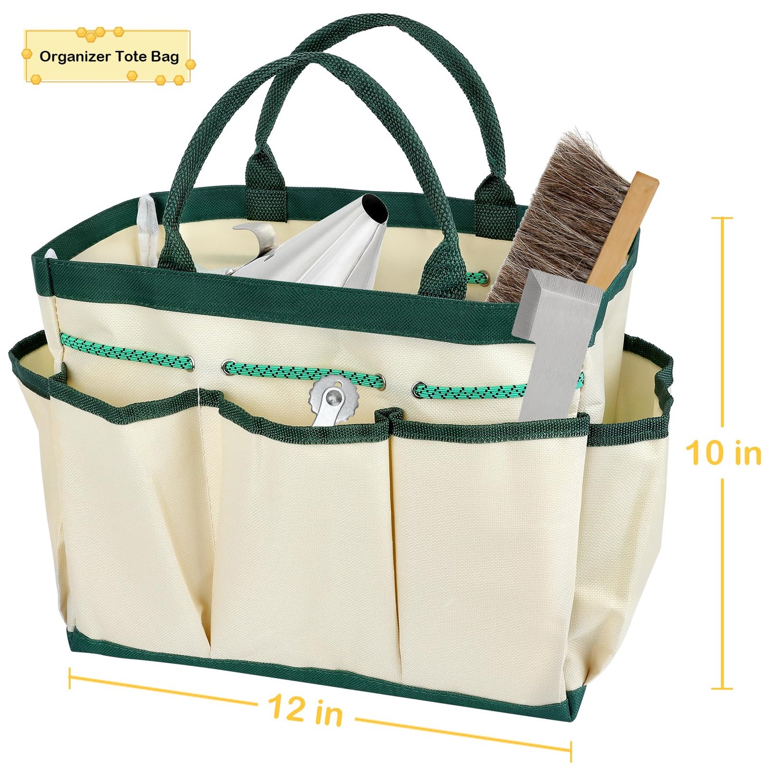 - Bee Keeping Tool Bag: This bee keeping supplies set comes with an organizer tote bag which is made from long-lasting oxford cloth. The bag features multiple pockets to securely hold your tools in place.
