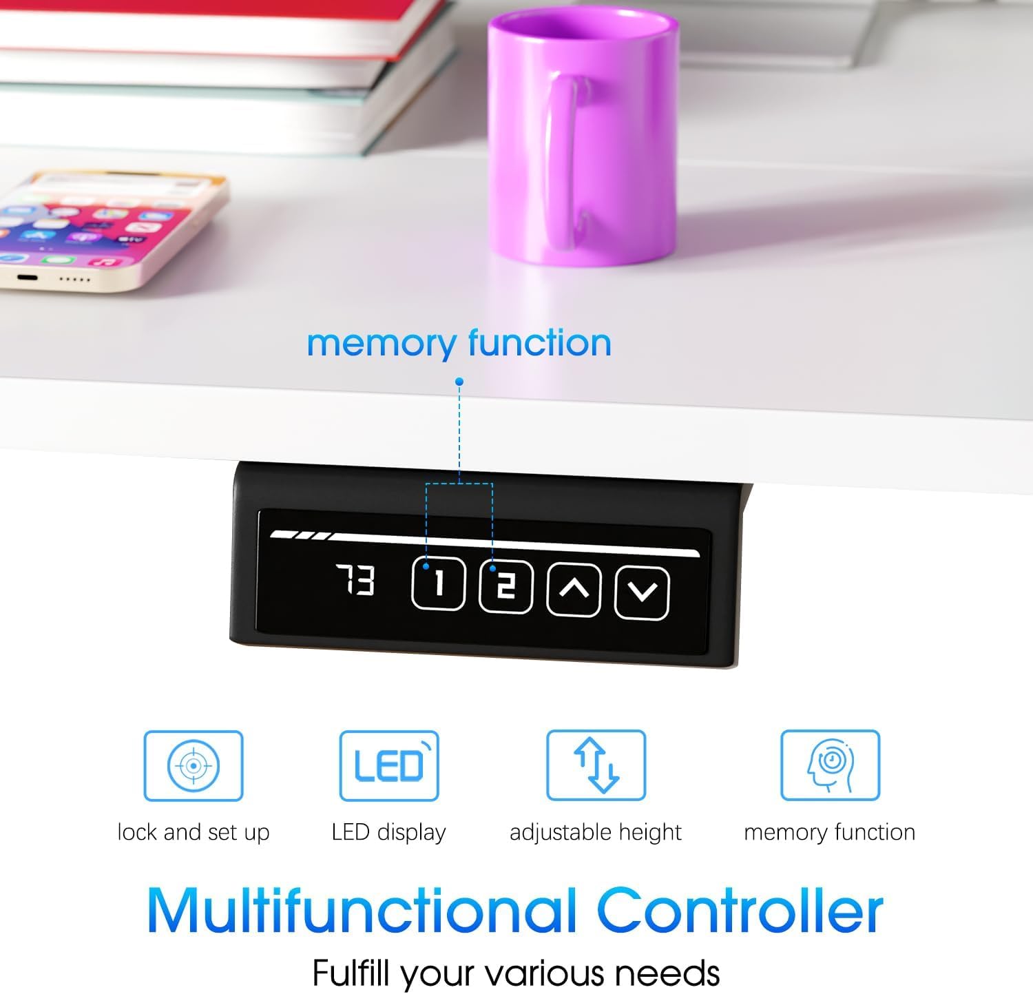 - 【Height Adjustable Desk】Electric standing desk is equipped with LED screen to display the operating height in real time, and the desktop height can be raised from 28" to 46" in just 10 seconds. Height-adjustable desk helps improve posture and reduce discomfort to improve work efficiency.
