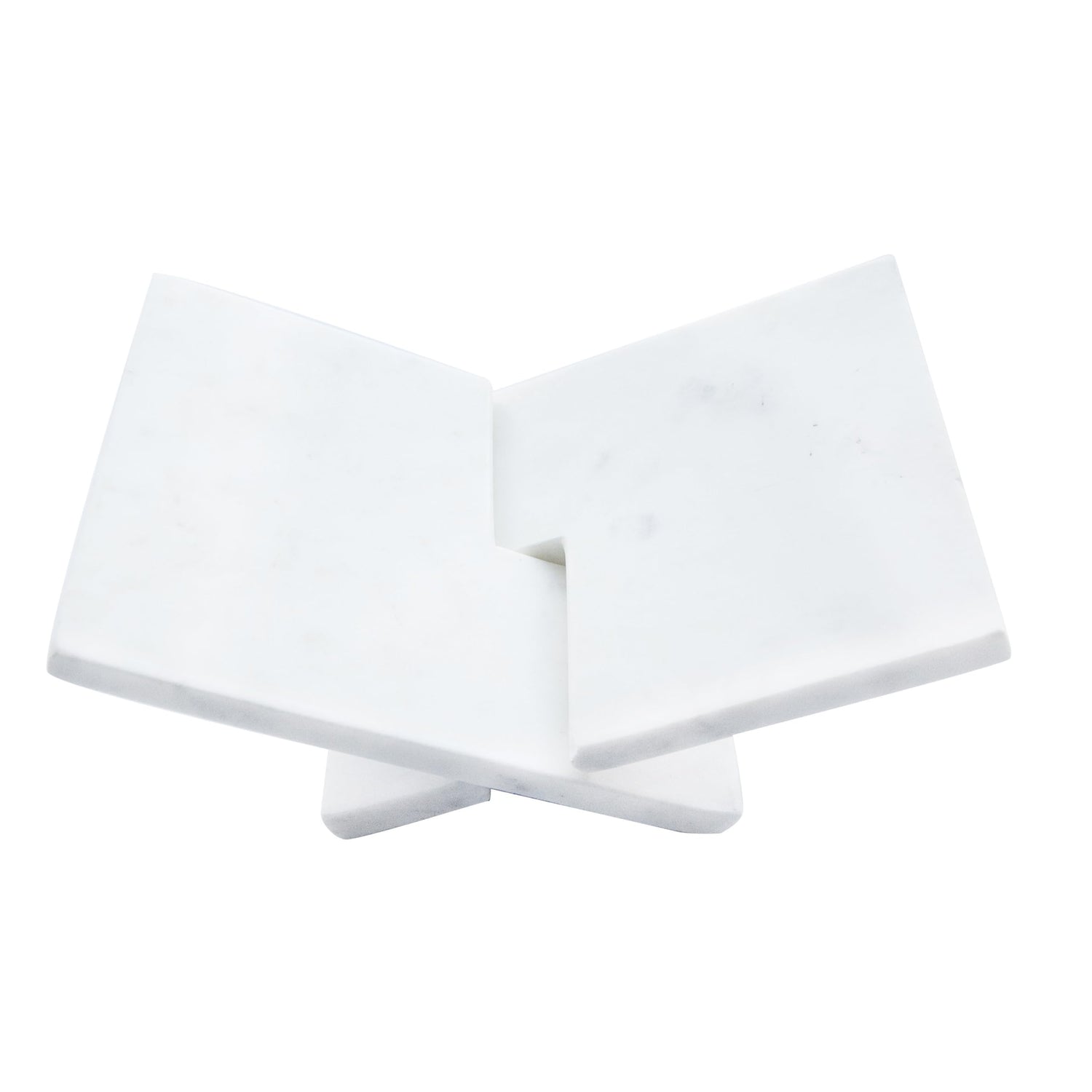 - A rectangular and sturdy marble book holder that has a white color and a smooth finish