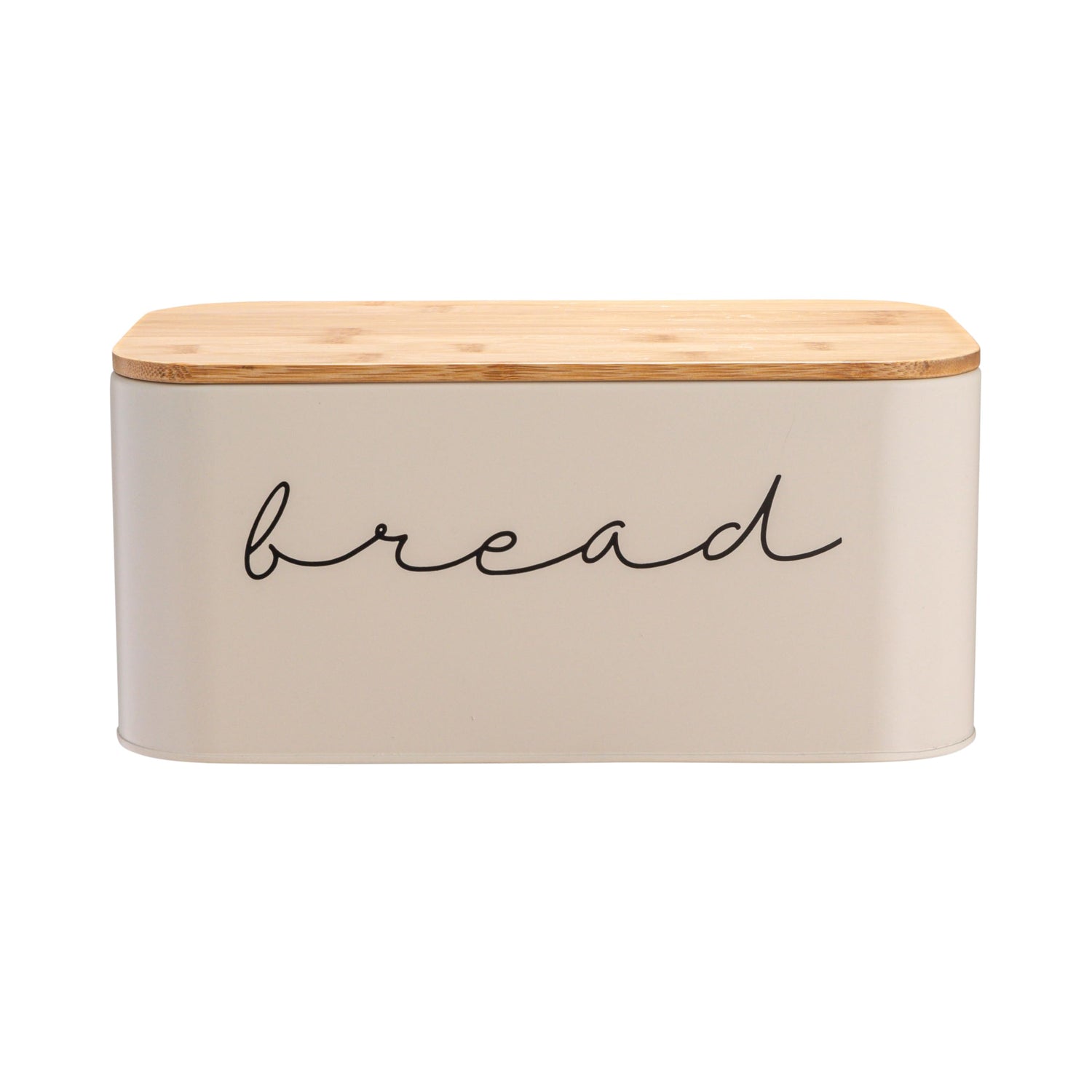 Details: Warm, thick crusted, home baked bread has no better place than in this lovely reproduction of a vintage bread box. Enameled and classically styled with a bamboo lid, this bread box will shine on any counter top!