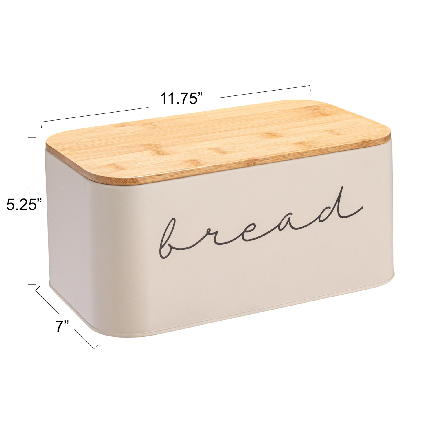 Bloomingville Metal Bin with Bamboo Lid, Cream Bread Box, 11.75" L x 5.25" W x 7" H
