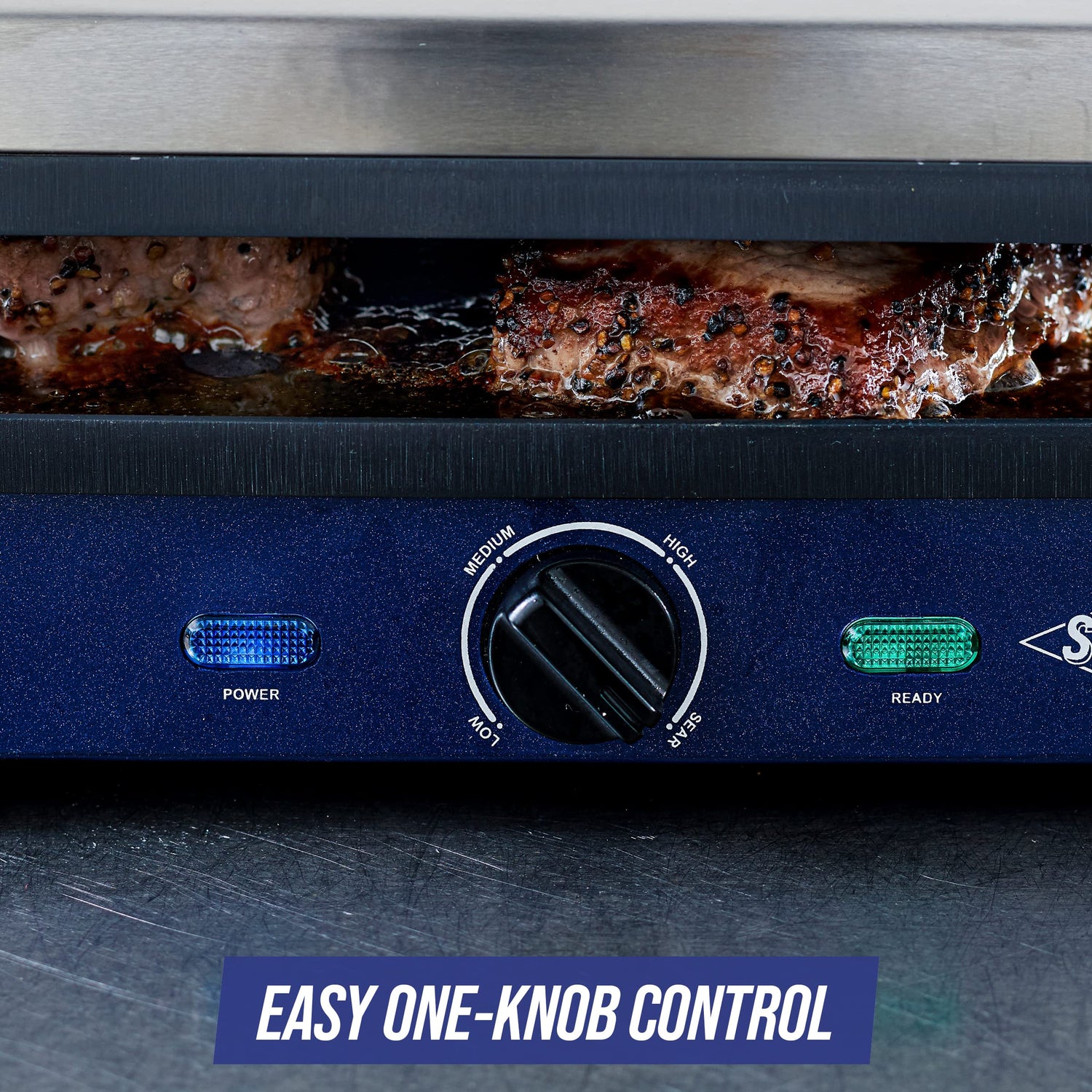 Blue Diamond Electric Contact Griddle, Healthy Ceramic Nonstick, PFAS & PFOA-Free, Open Flat Design, Metal Utensil Safe, Drip Tray, Dishwasher Safe Removable Plates, Adjustable Temperature, Blue