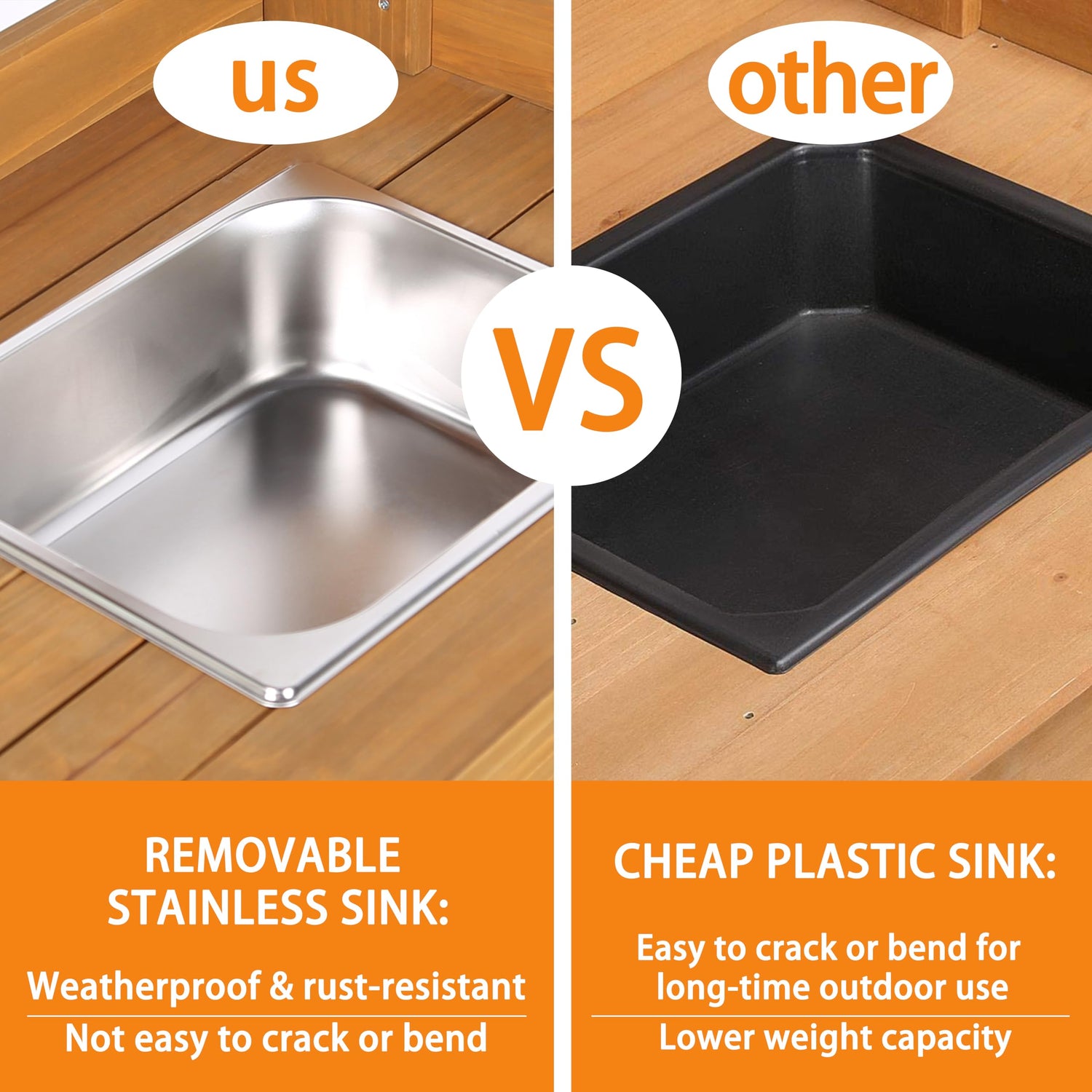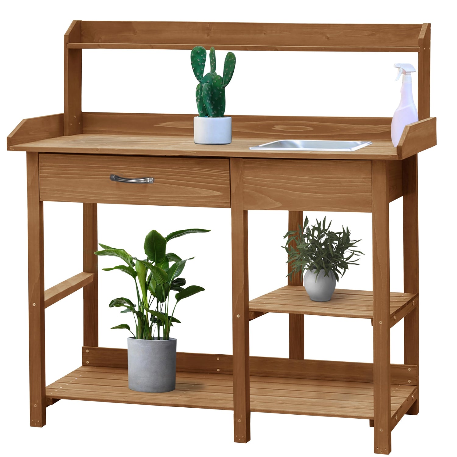 - Removable Stainless Steel Sink - The potting table features a detachable stainless steel sink that is rust and waterproof, allowing for easy watering, cleaning, transplanting, or mixing soil without mess.
