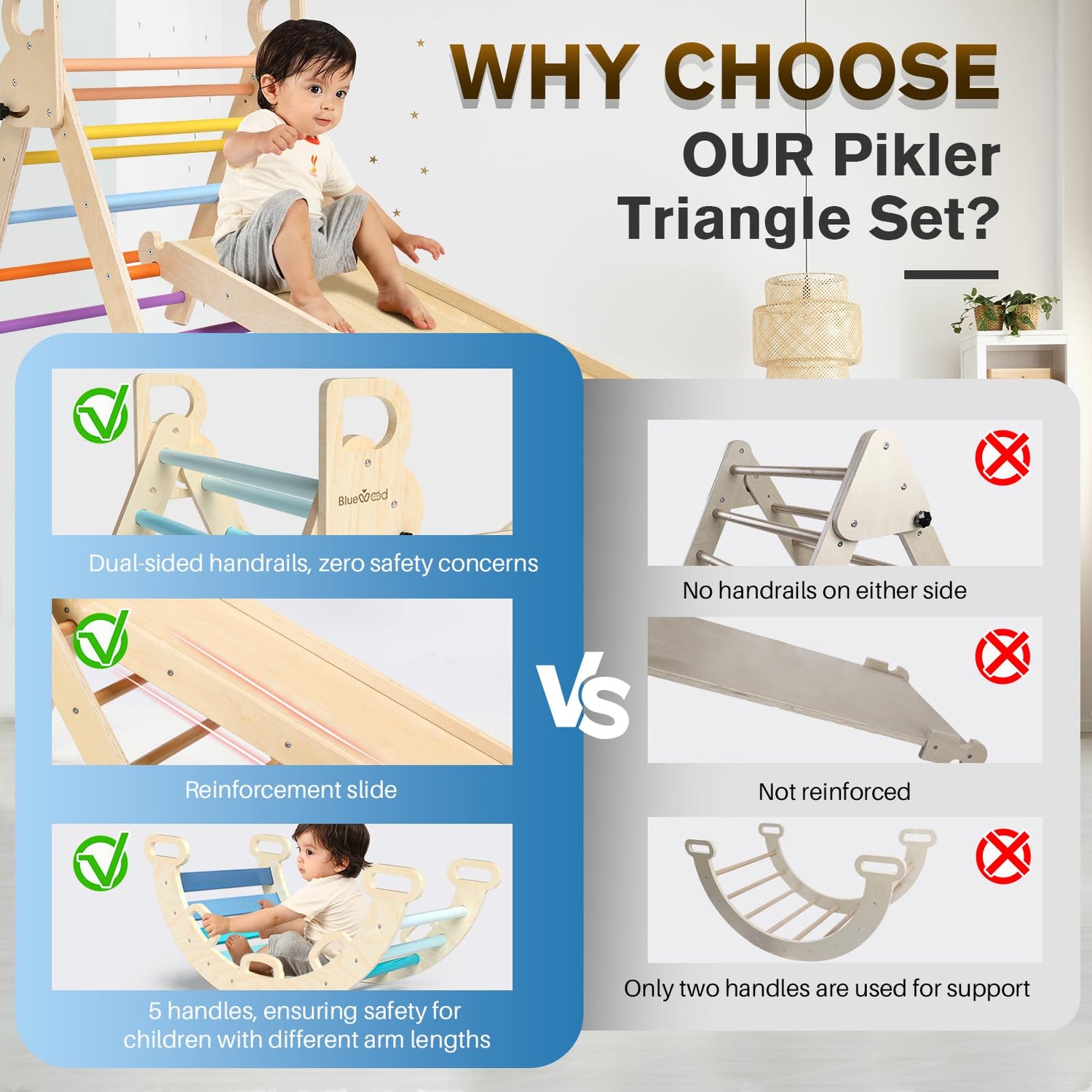 • Safer & Friendly: BlueWood Montessori Climbing Set is made from FSC-certified 100% natural solid wood, ensuring safety. Our toddler climbing toys meet ASTM F963-17 and CPSIA standards. Safety is our top priority.