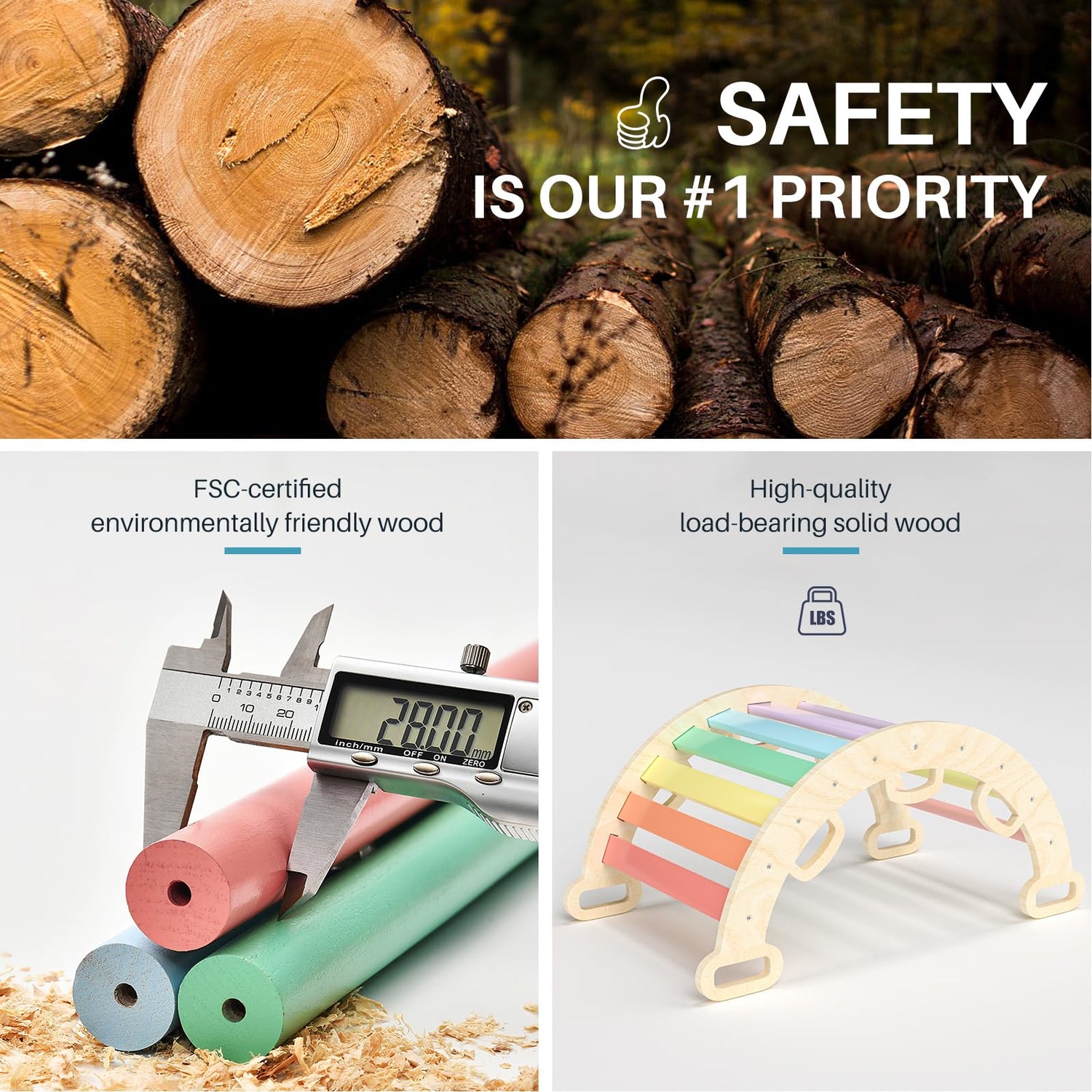 - Perfect Gift for Toddlers - Made of premium hardwood, our solid climbing arch can bear up to 150 pounds. With extremely high stability and safety, this toddler climbing structure is suitable for children to naturally develop motor skills and explore their learning boundaries.
