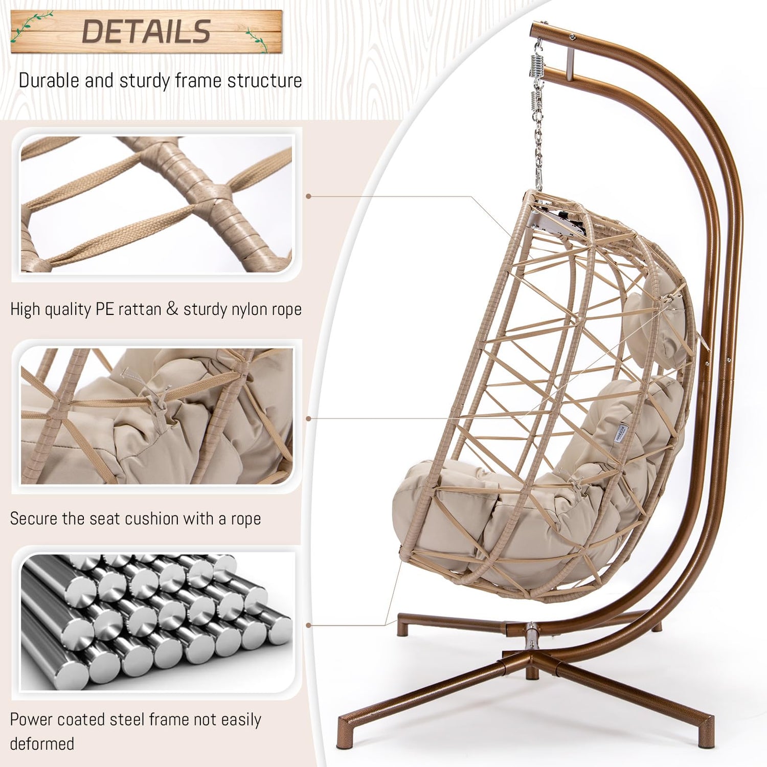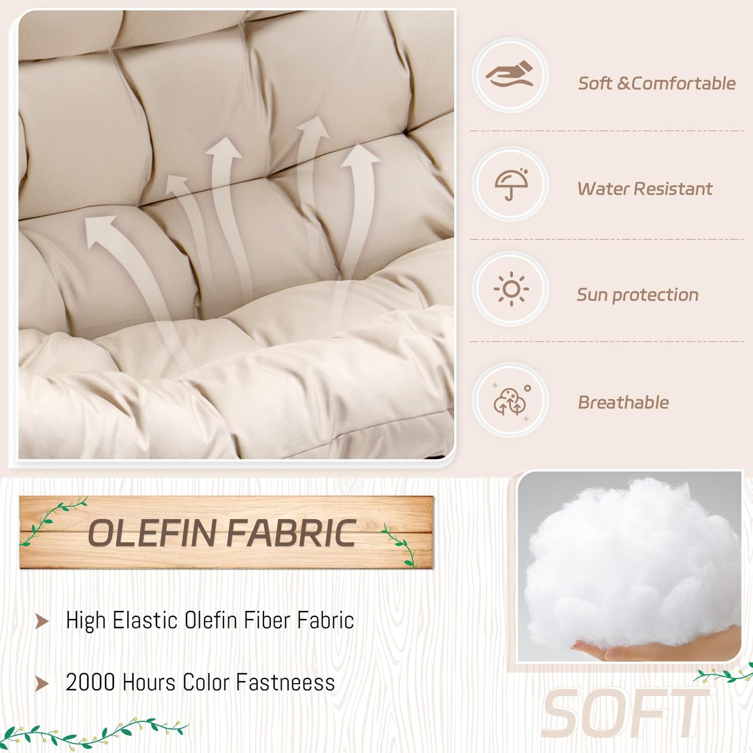 - Durability: Cushions are covered in fade-resistant, water-resistant polyester fabric; They hold up to sun, rain, and spills—so your 2 person egg chair swing stays fresh and photo-ready, season after season
