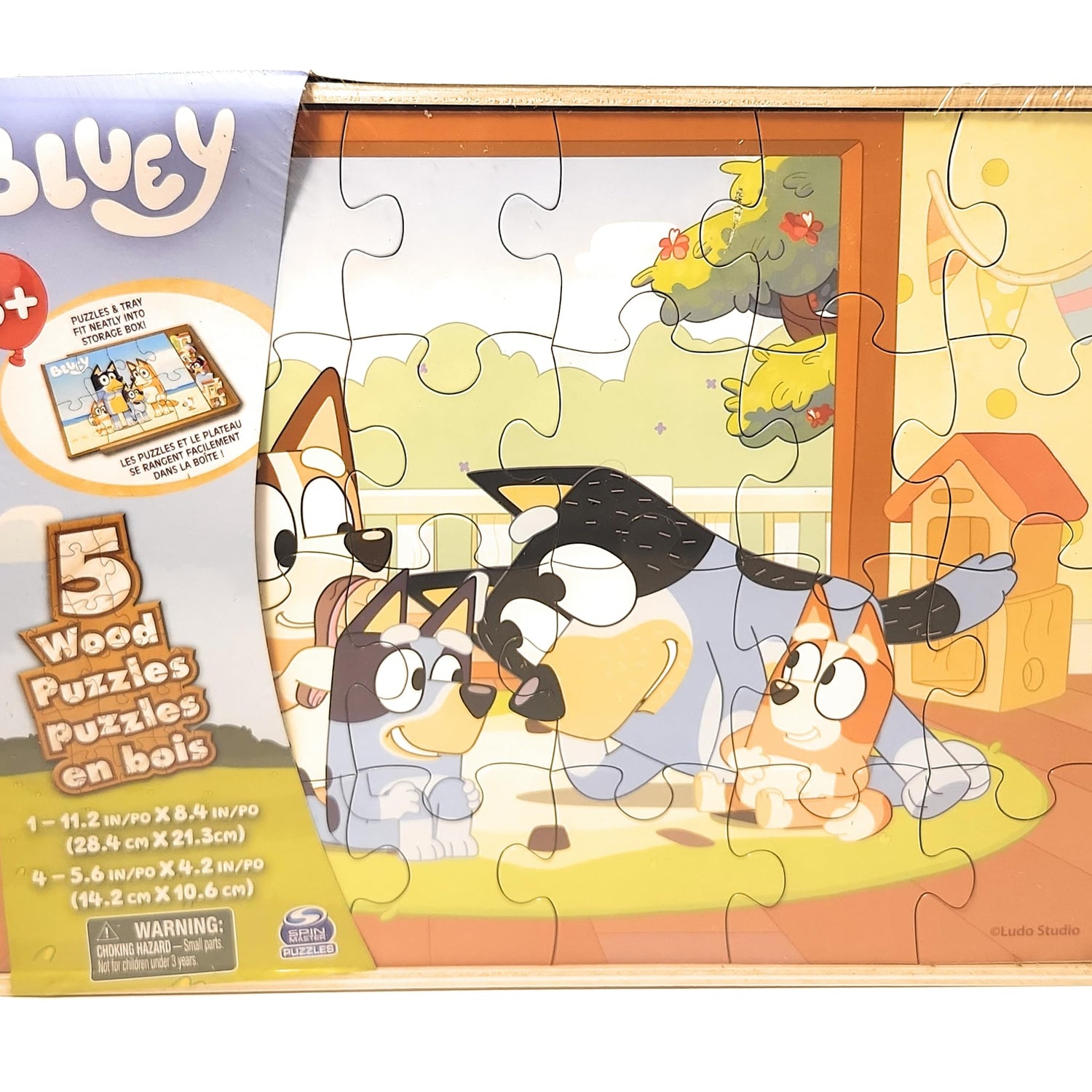 Bluey 5 Wood Puzzles with Storage Box, 72 Exclusive Mickey Mouse Clubhouse Stickers and Star Wars 300+ Stickers Bundle for Kids - Ages 3 and Up