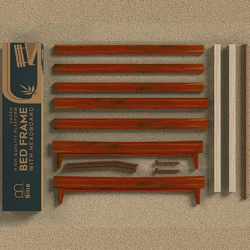 Built to last, the Bme Caden bed frame is crafted from solid wood, showcasing unique grains and finishes that add character to each piece. With 12 sturdy wood slats and 2 central metal legs, this frame supports up to 800 pounds, making it suitable for king, queen, and full-size mattresses.