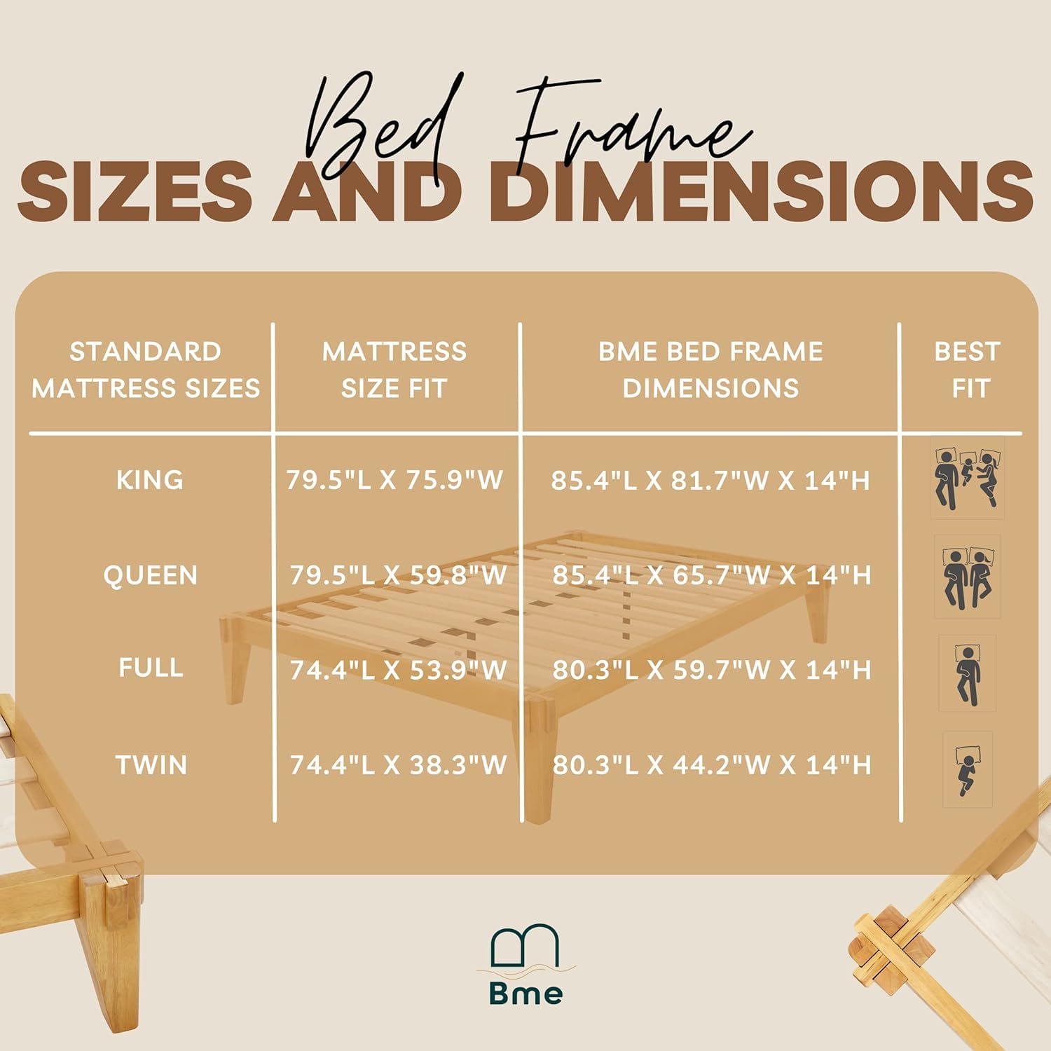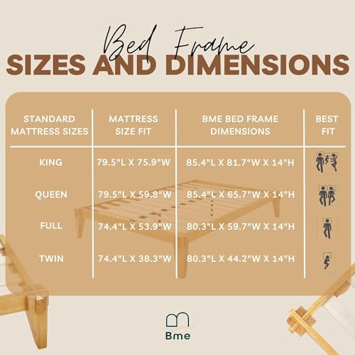 Bme Chalipa 14” Solid Wood Queen Bed Frame with Japanese Joinery - Minimalist Platform Design & Enhanced Storage