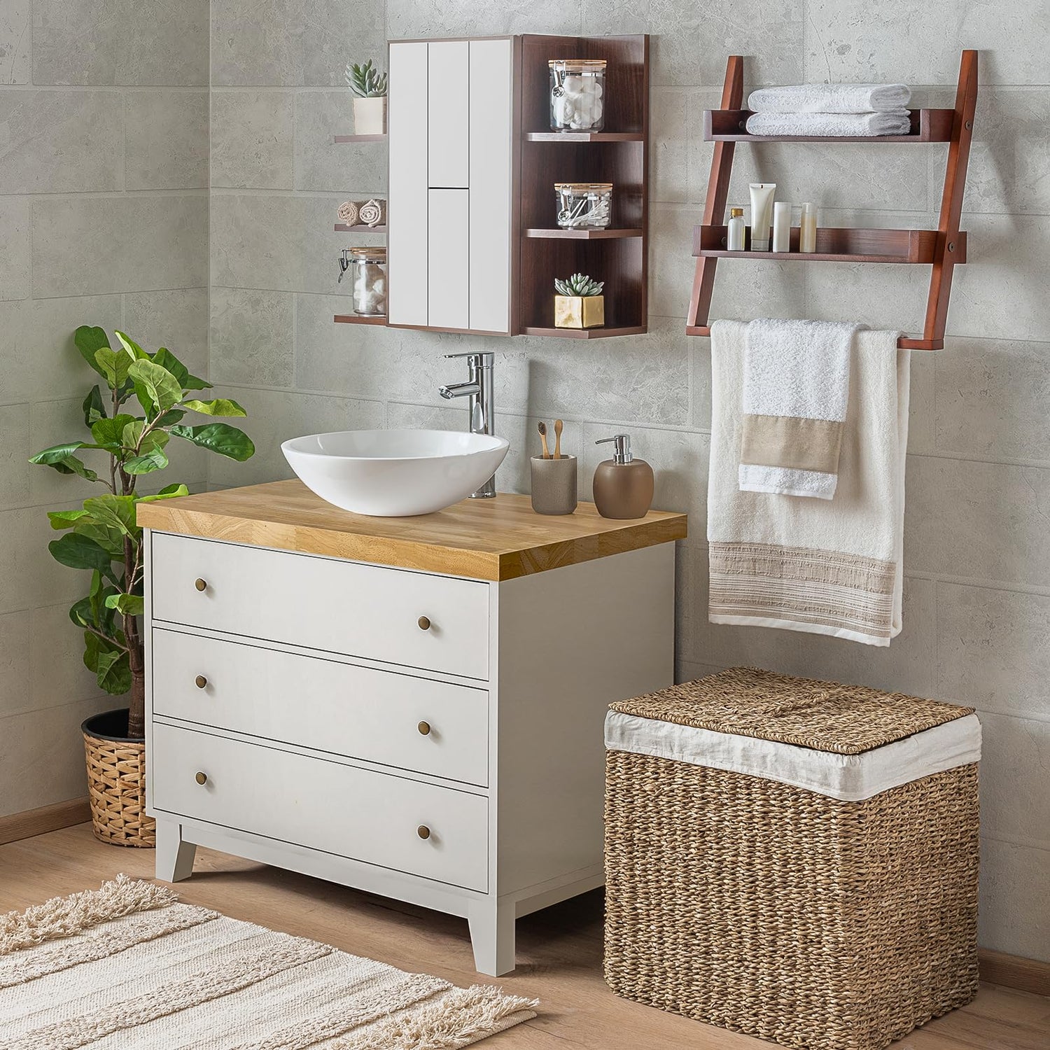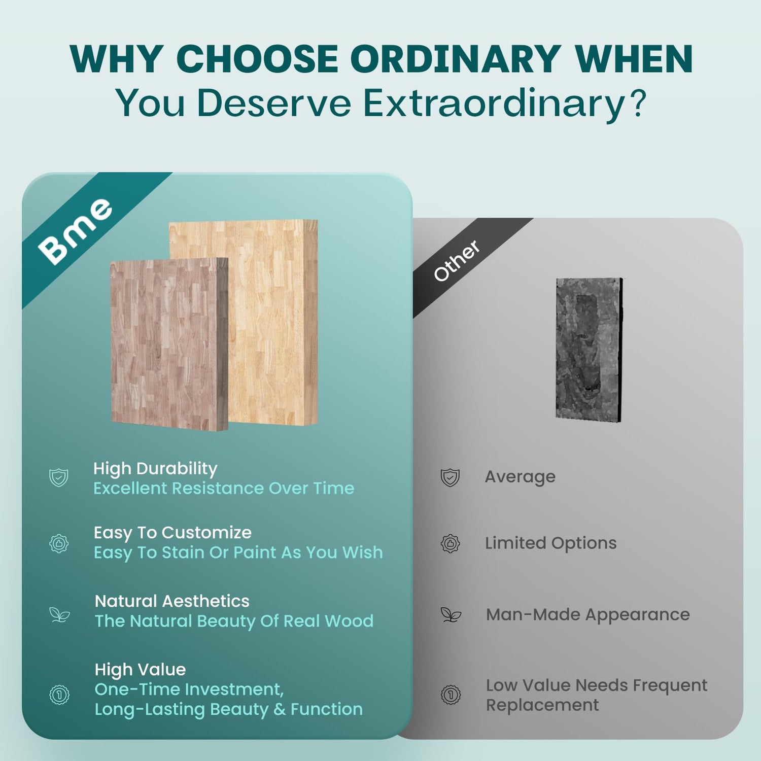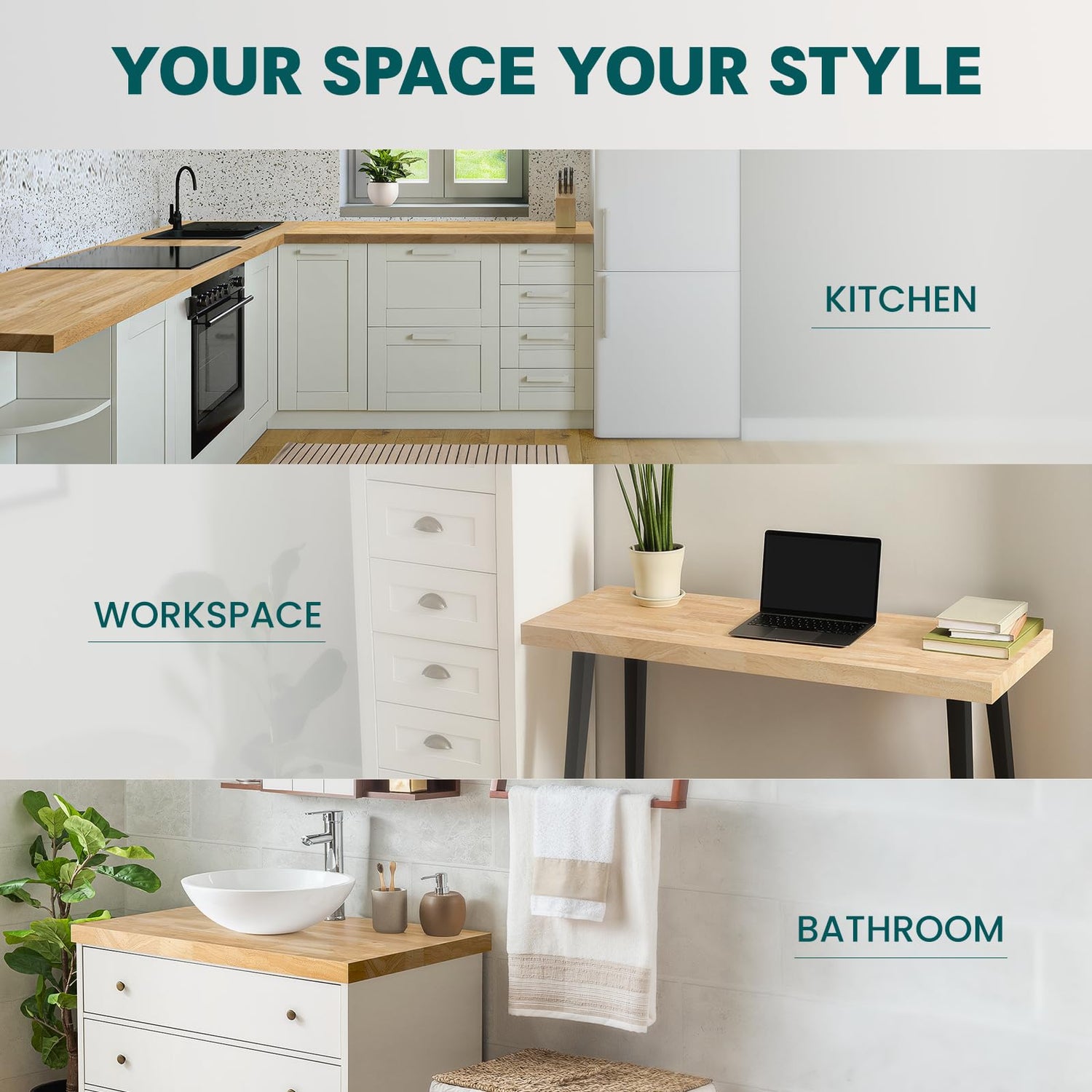 🌳 Our desktop countertop is suitable for DIY lovers. The unfinished surface allows you to unleash your creativity, as you can easily customize your style and transform the appearance with options such as Natural, Teak, Cherry, or Walnut finishes.