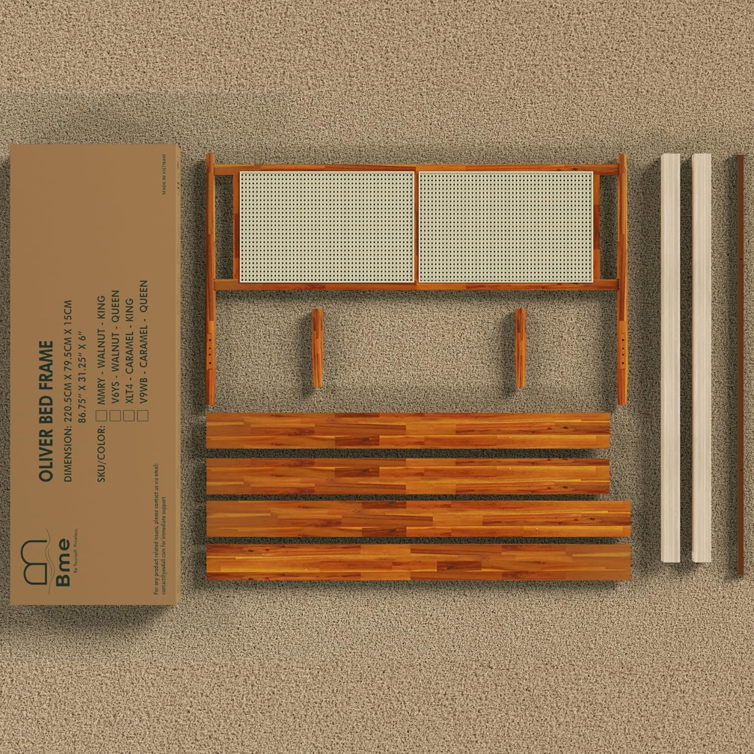 Bme Oliver Headboard Queen Size Bed Frame - 15-Inch Signature Design with Rattan Headboard, Bohemian and Mid Century Style, 12-Slat Wood Support, No Box Spring Needed - Easy Assembly, Caramel