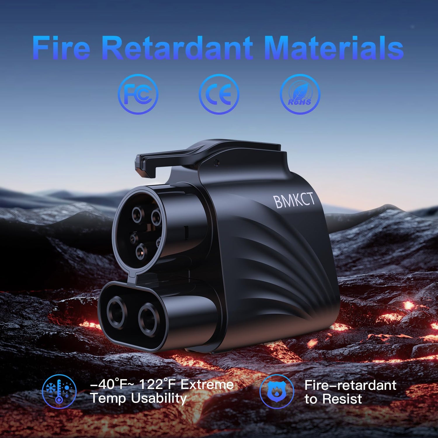 - INTELLIGENT PROTECTION, EFFORTLESS USE: The BMKCT's Tesla to CCS1 adapter is equipped with a temperature cutoff switch that automatically disconnects at 140ยฐF, along with a secure locking mechanism and silicone sealing gasket for a safe, smooth connection every time.
