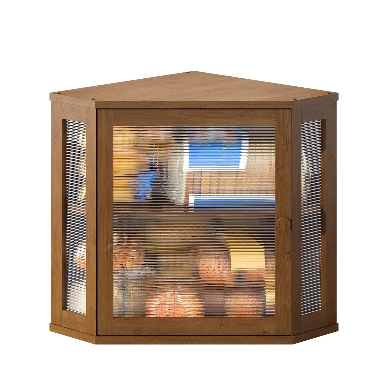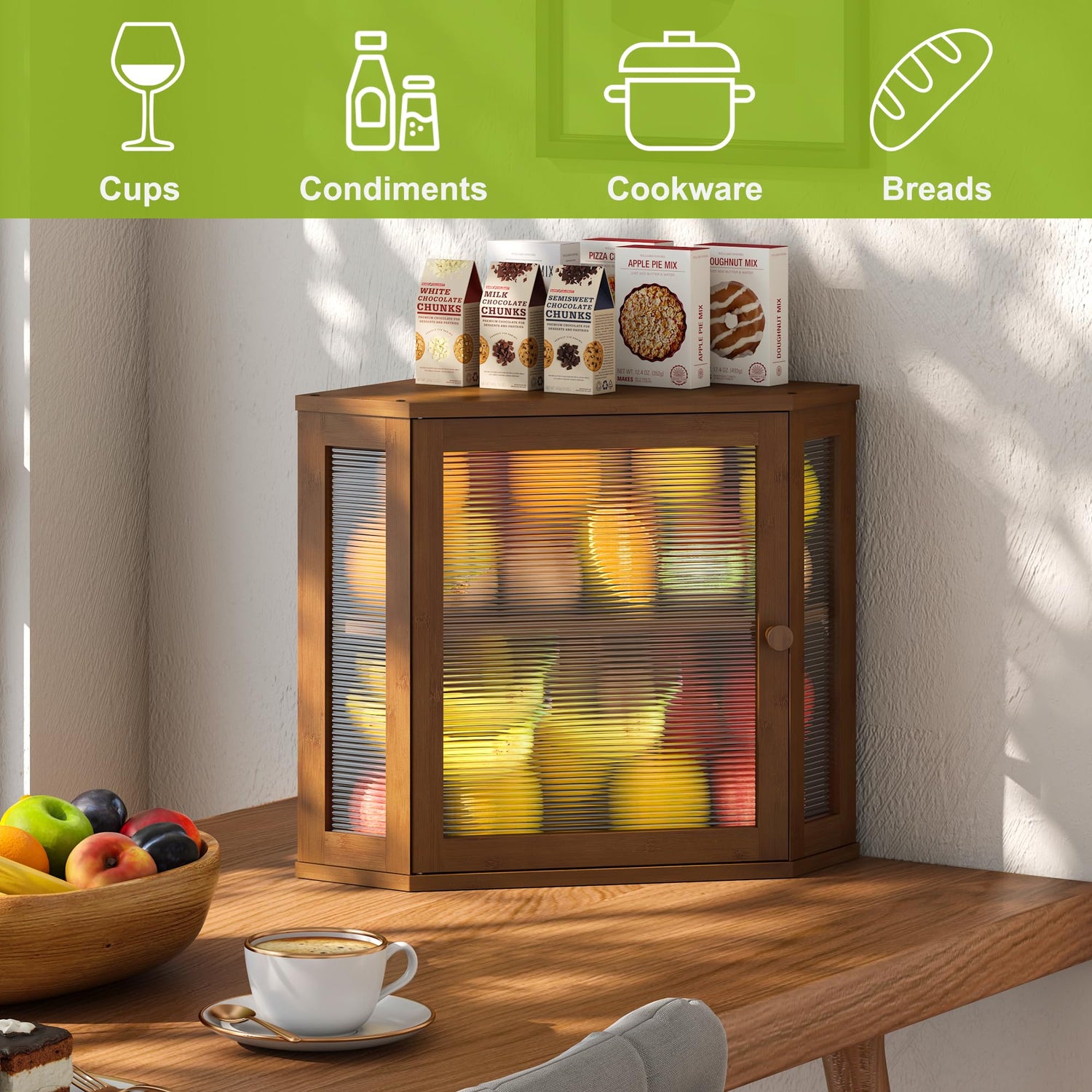 BMOSU Corner Bread Box for Kitchen Countertop Double Layer Bamboo Wooden Bread box Large Capacity Bread Storage Bin(Brown, Medium)