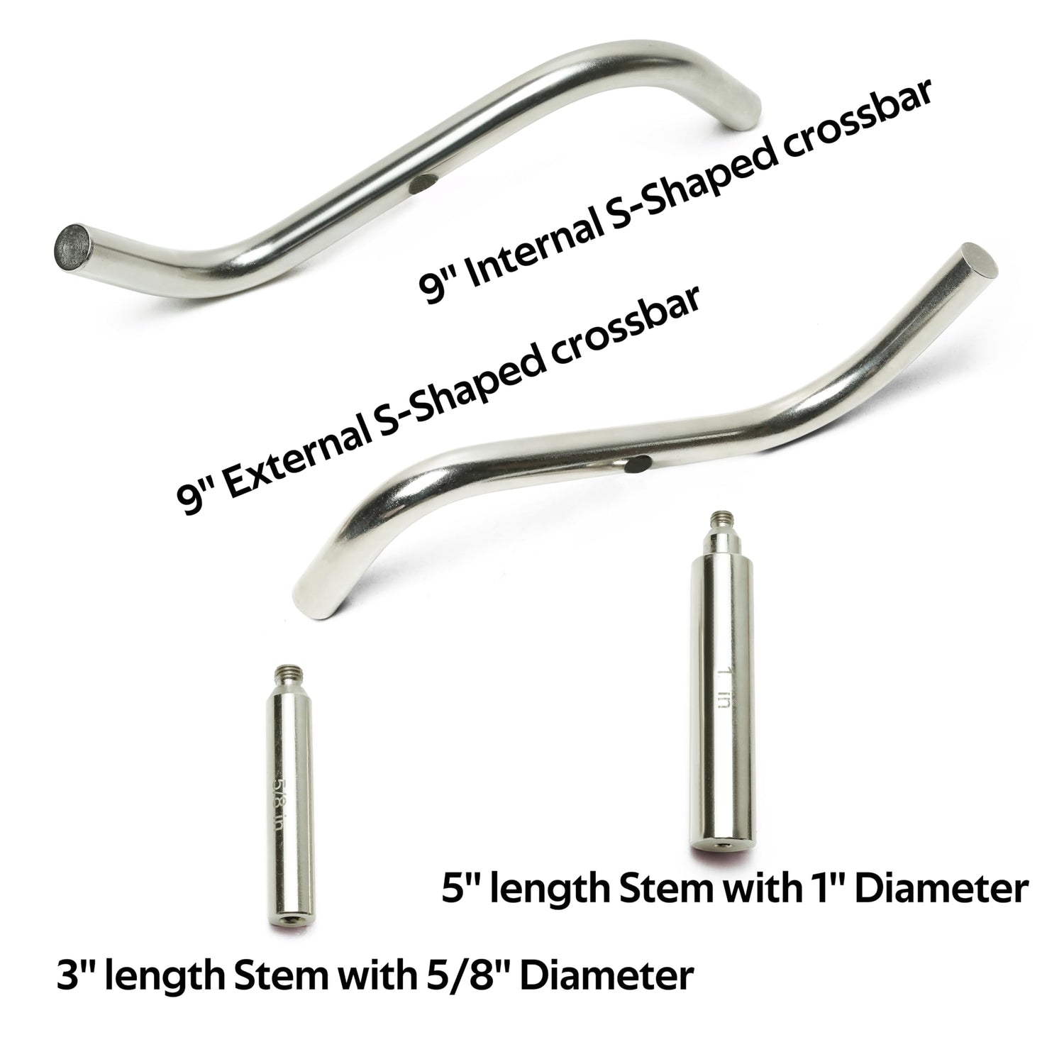 - This set include 9" Internal S-Shaped crossbar, 9" External S-Shaped crossbar, 3" length Stem with 5/8" Diameter, 5" length Stem with 1" Diameter and Allen key.