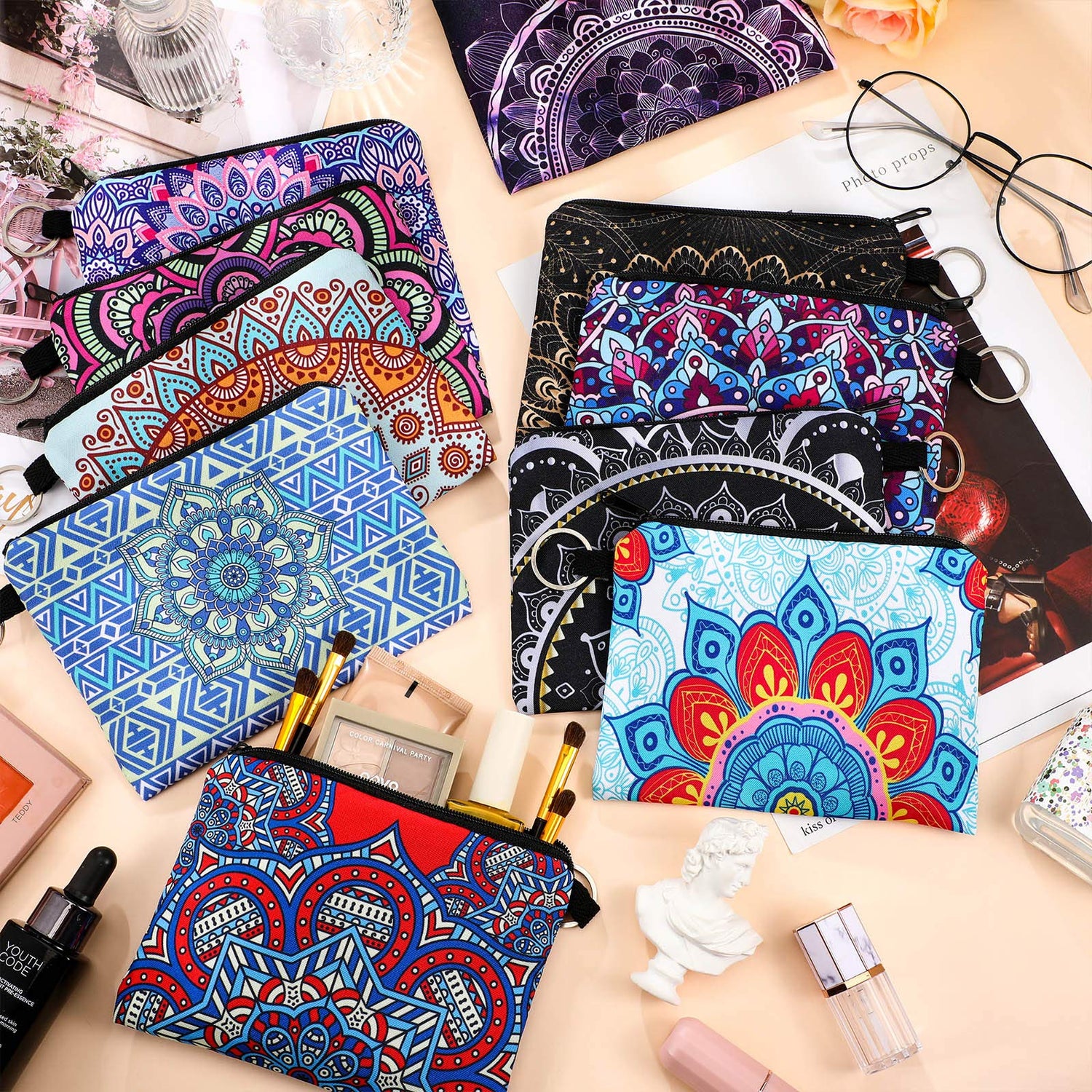 Boao 10 Pieces Small Coin Purse for Women Bulk Boho Change Purse Mini Pouches Wallet Coin Bag with Zipper for Women Girls (, 4.52 x 3.74 Inch)