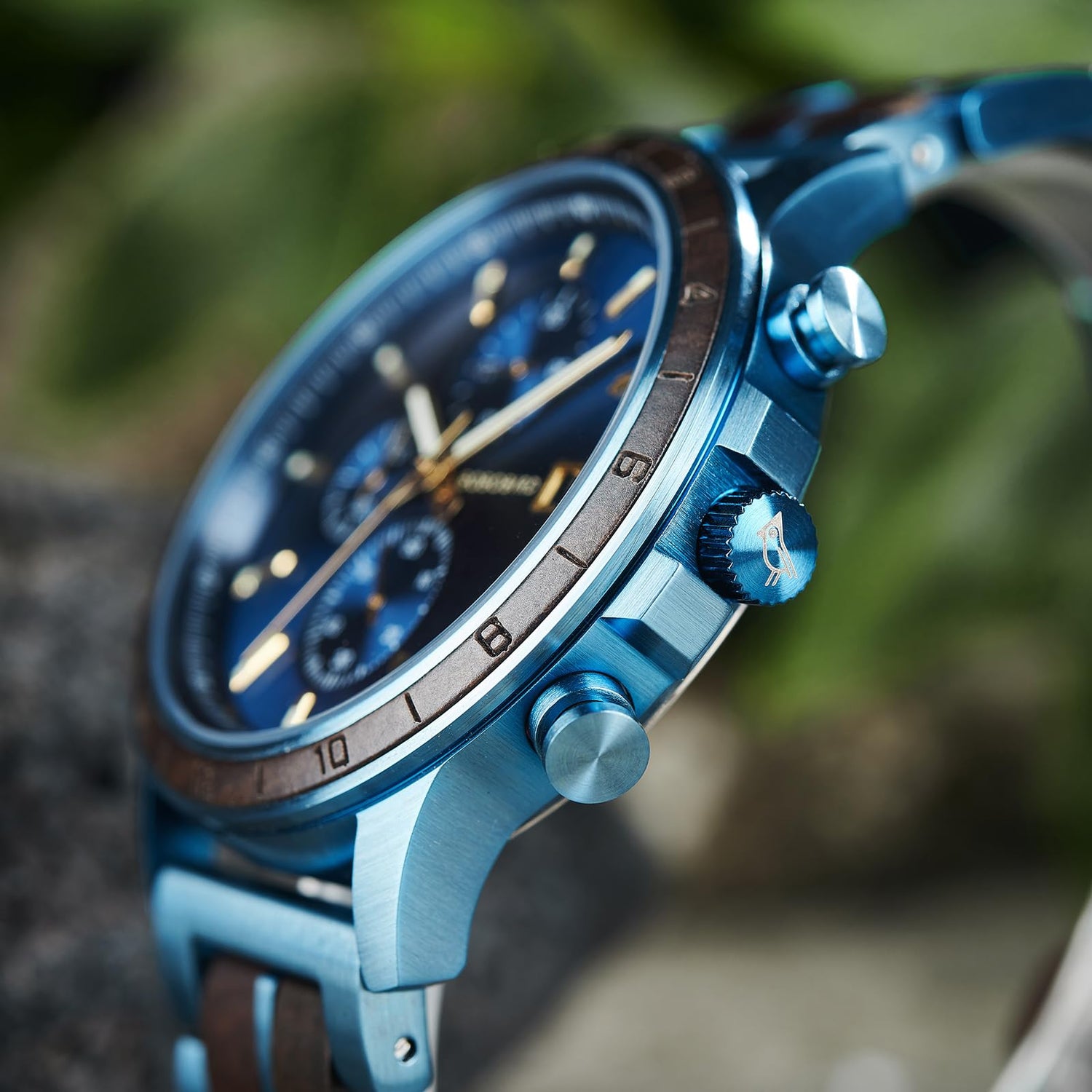 BOBO BIRD Men's Wooden Watch with Stainless Steel Wood Strap, Japanese Quartz Movement, Multi-Functional Chronograph Watch for Business and Daily Wear (Bule)