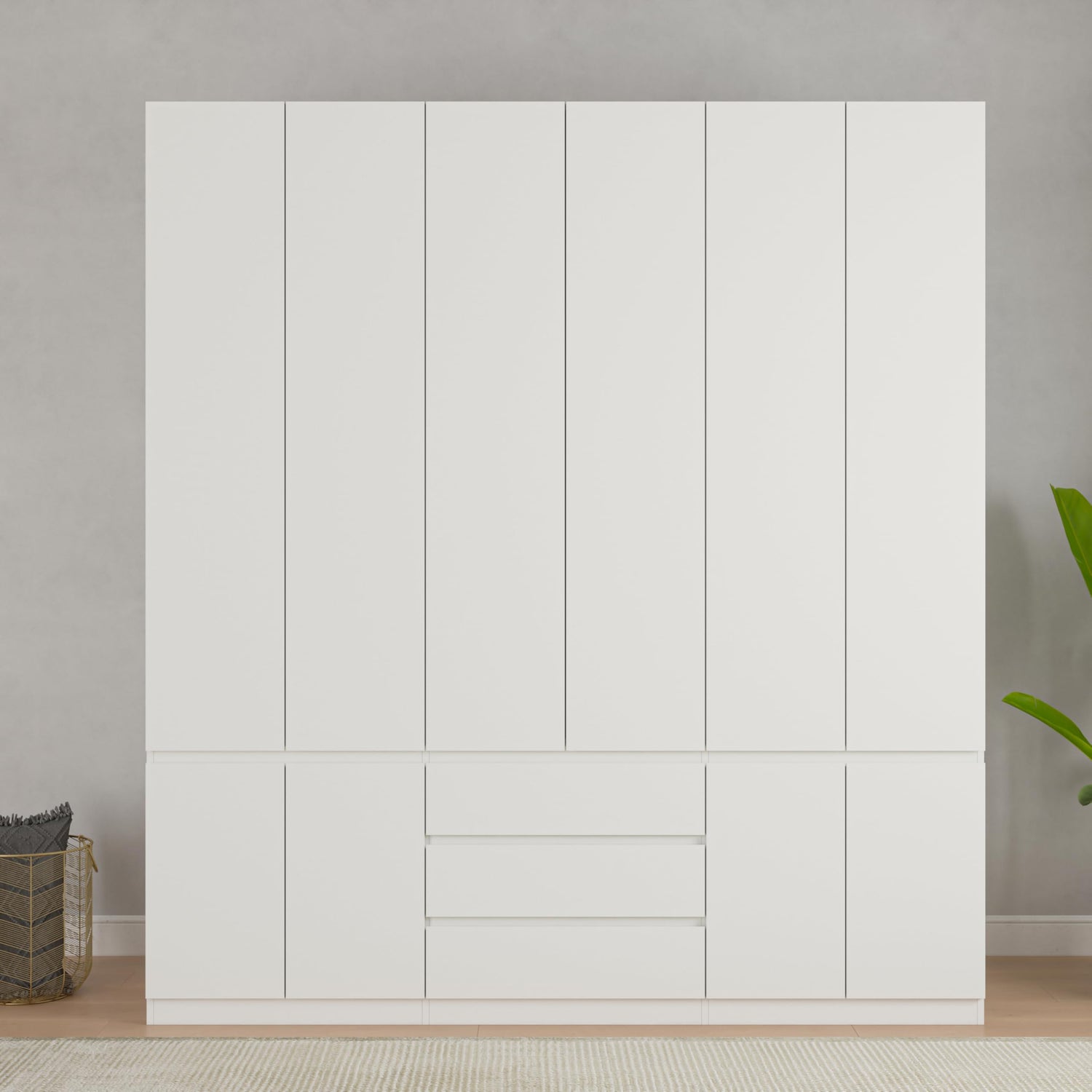 Bobve 6-Doors Armoire Wardrobe Closet, Wooden Wardrobe Closet with 3 Drawers, Armoire and Wardrobe with Shelves & Hanging Rod for Bedroom, White (70.9" W x 23.62" D x 78.74" H)