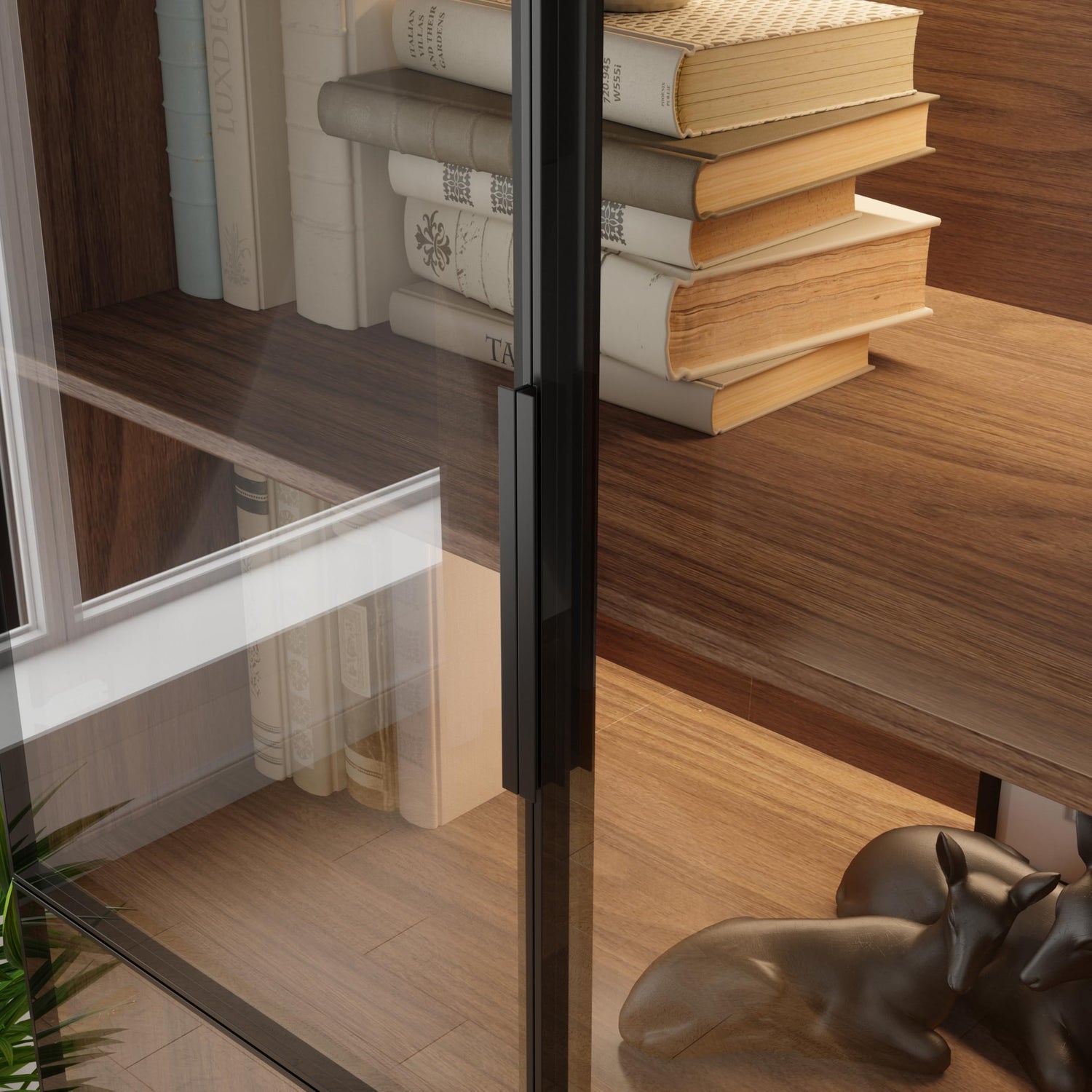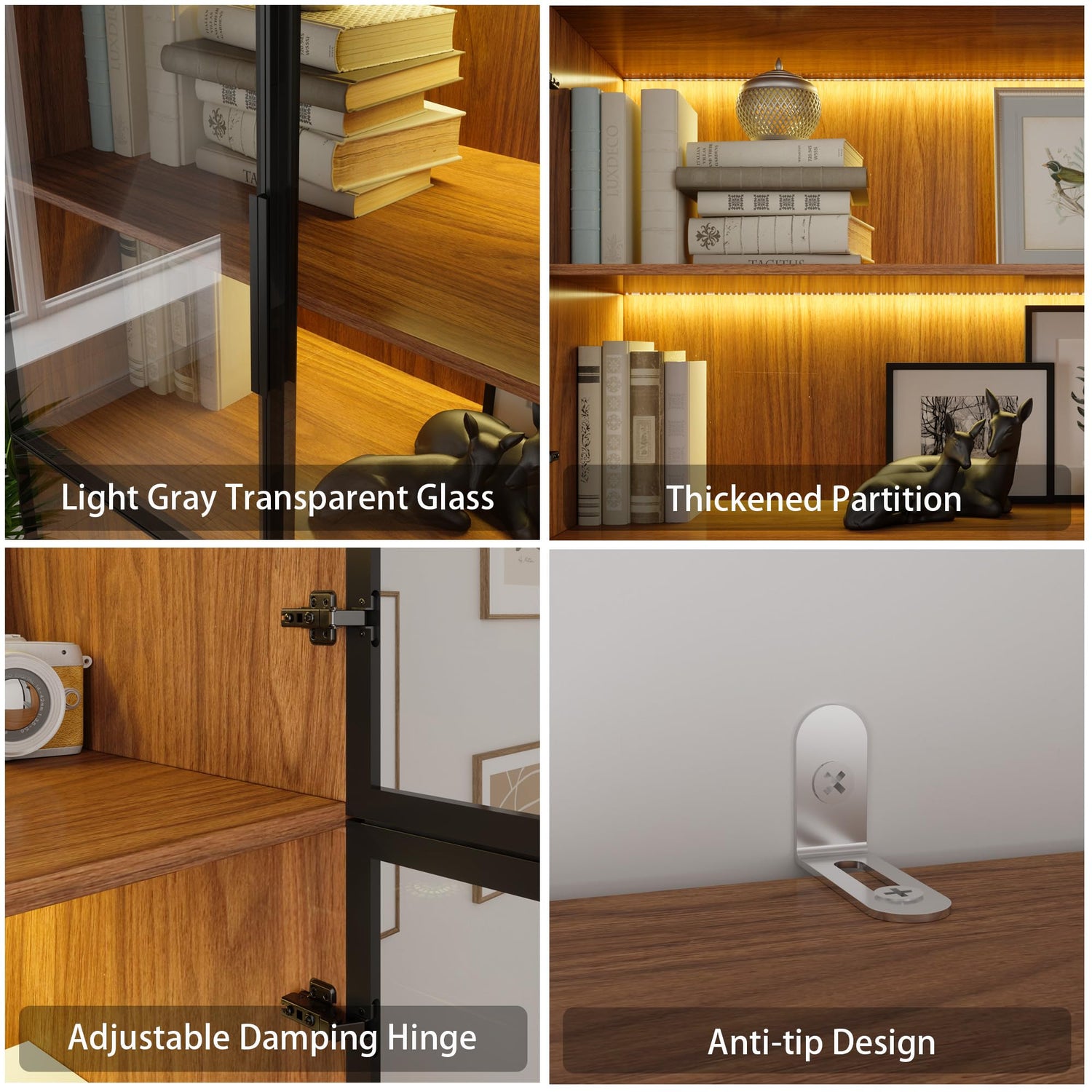 - 【 Glass Doors & Wall Anchor 】: This glass cabinet display case with 4 glass doors ,has a modern, light, and luxurious style, combining walnut wood panels and glass doors for an elegant look with any decor. The wall anchor kitprovided to prevent tip-over incidents, the back of the large bookcase for living room are also equipped with a stabilizing device, which makes the book shelf more stable.