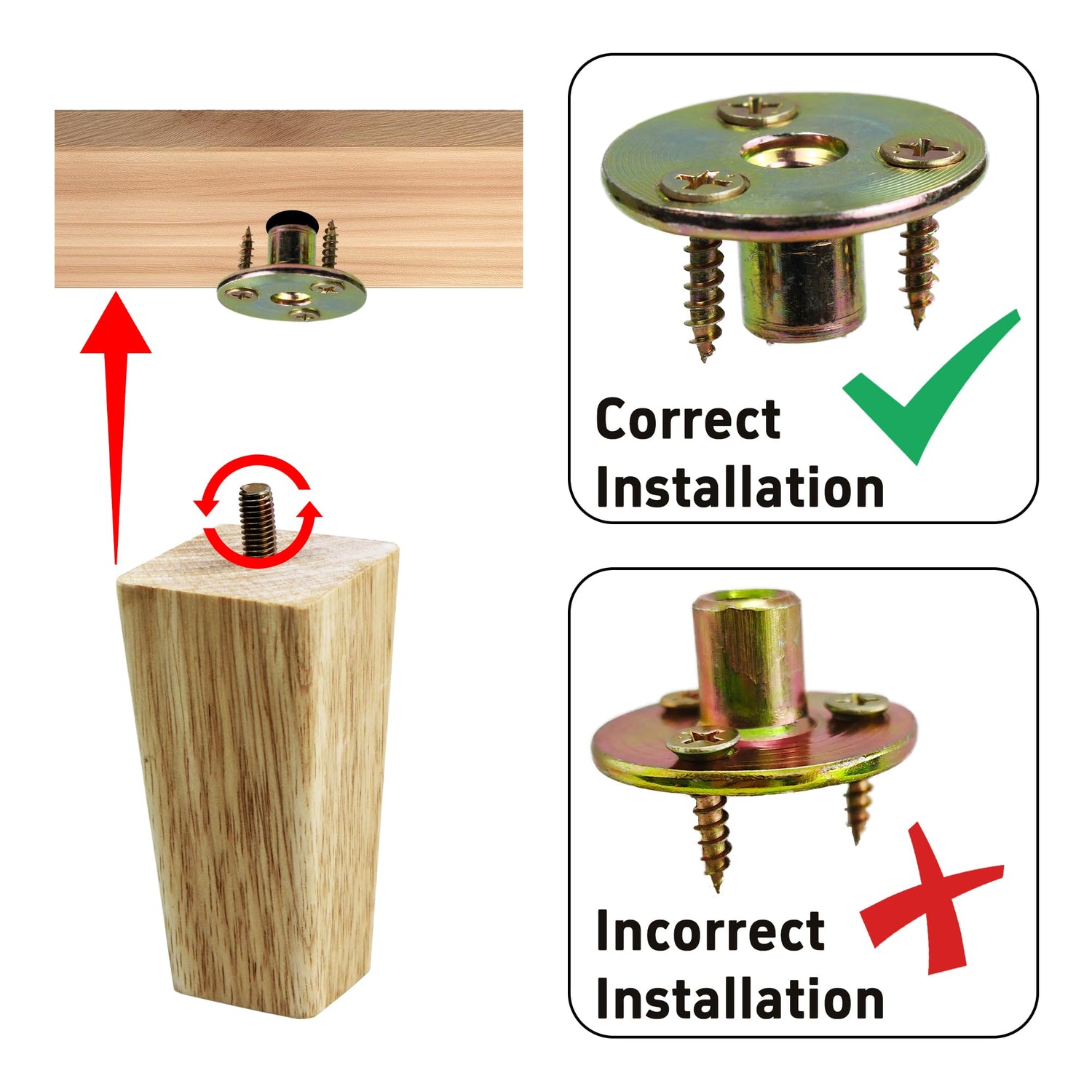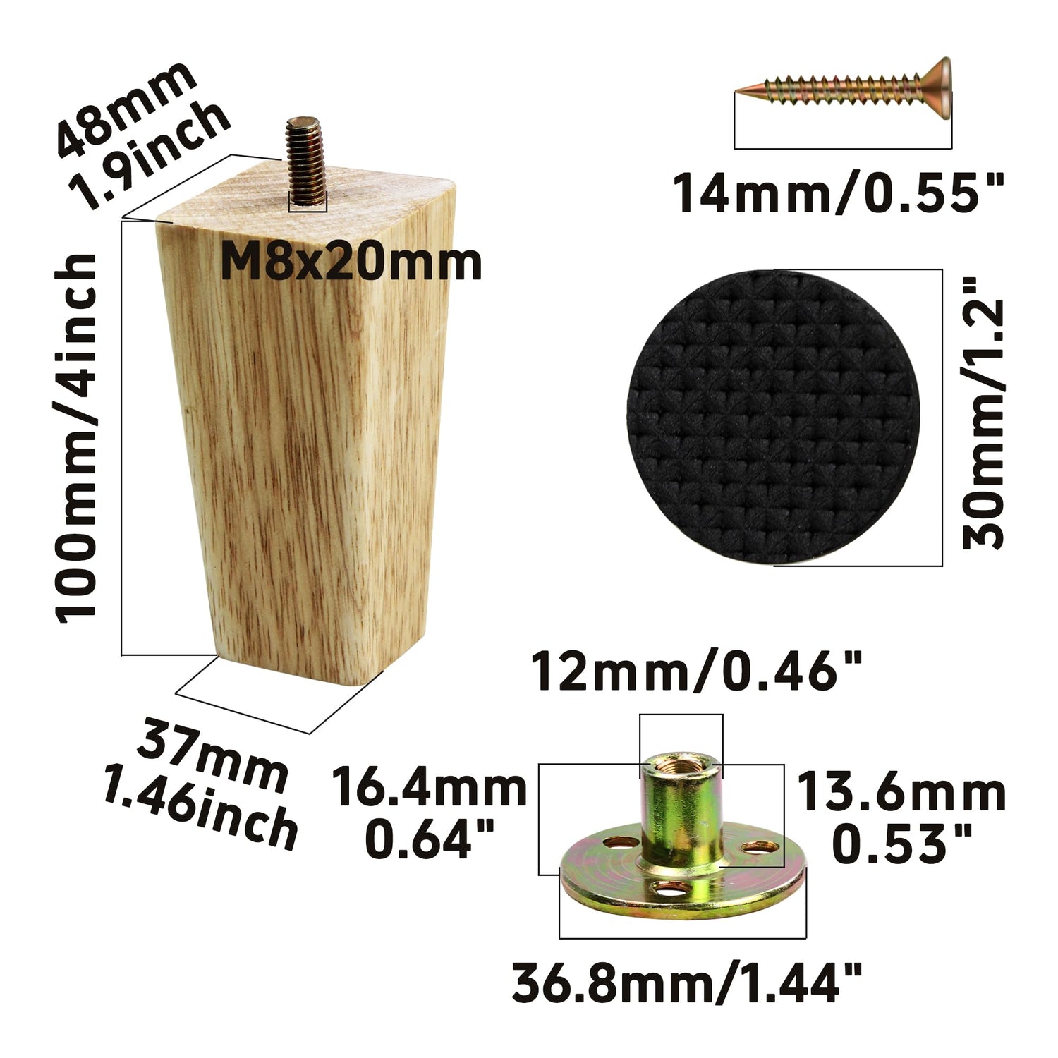 - Package Including: You will receive 4PCS Solid Wood Furniture Legs, 4pcs metal plates, 4pcs protective pads and mounting screws.