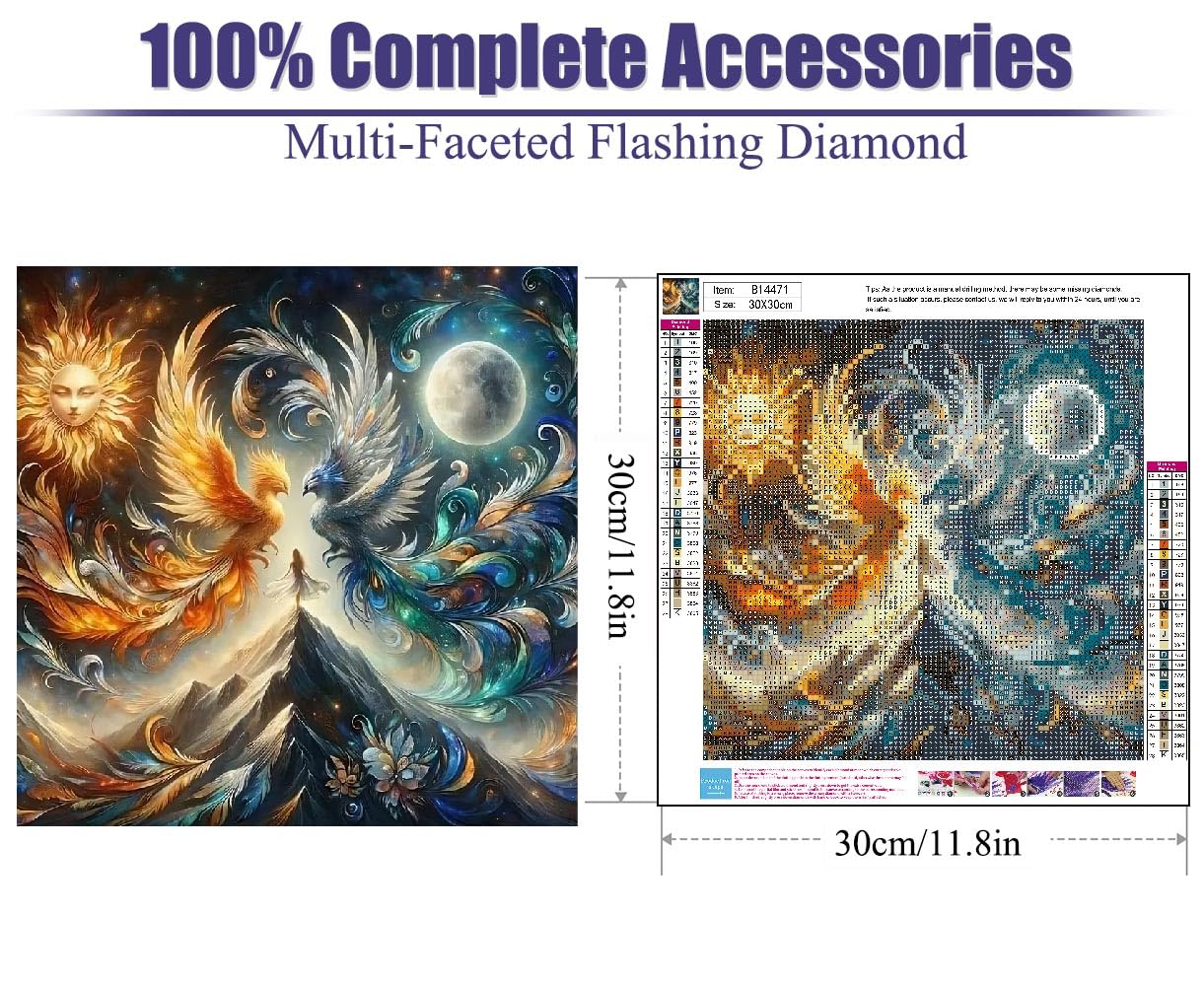 BOHADIY Phoenix Diamond Painting Kit for Adults - 5D Moon Art Kit for Beginners, Full Drill DIY Gem Art With Painting Kit for Home Wall Decor, 12 x 12 Inch