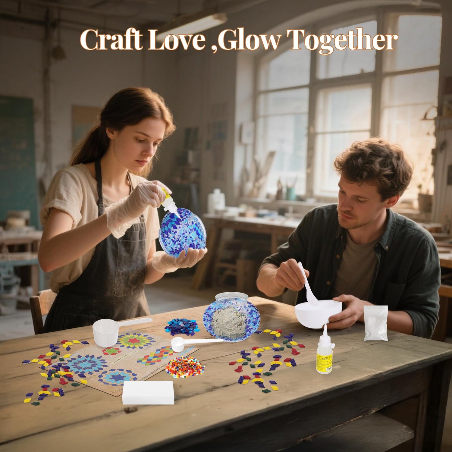 - 【The Gift of Shared Creativity】Ideal for family bonding, friend gatherings, or team-building. Customers love how it ‘turns crafting into quality time with loved ones.’ Beautifully packaged, the mosaic lamp Kit a heartfelt gift for weddings, holidays, or housewarmings—symbolizing warmth and shared creativity.