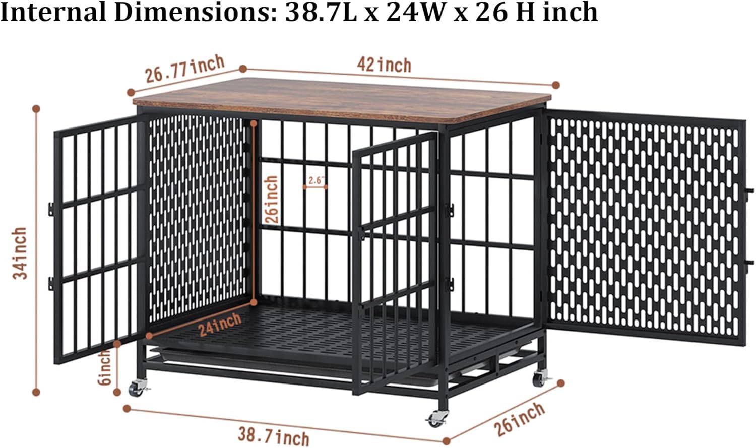 - Easy To Clean - The dog Crate has a slide-out tray underneath, which allows for easy clean up. The 42 inch dog crate double door make access very easy to clean, not only convenient for dog in and out but also good for you to interact and feed with your dog
