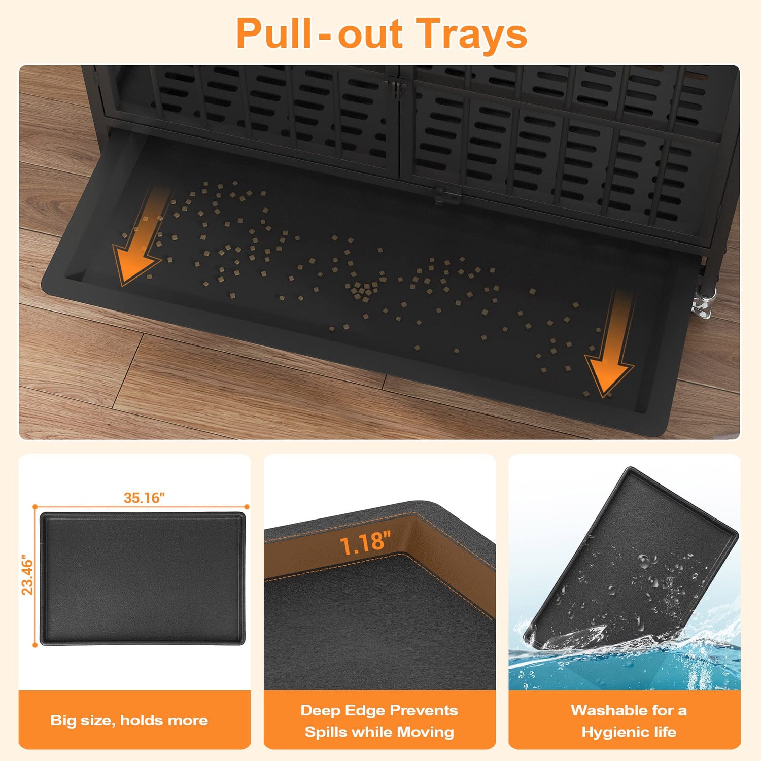 BOINN 42 inch Extra Large Dog Crate Furniture with Removable Trays, 3 Doors, 4 Wheels & 5 Locks - for Medium and Large Dogs