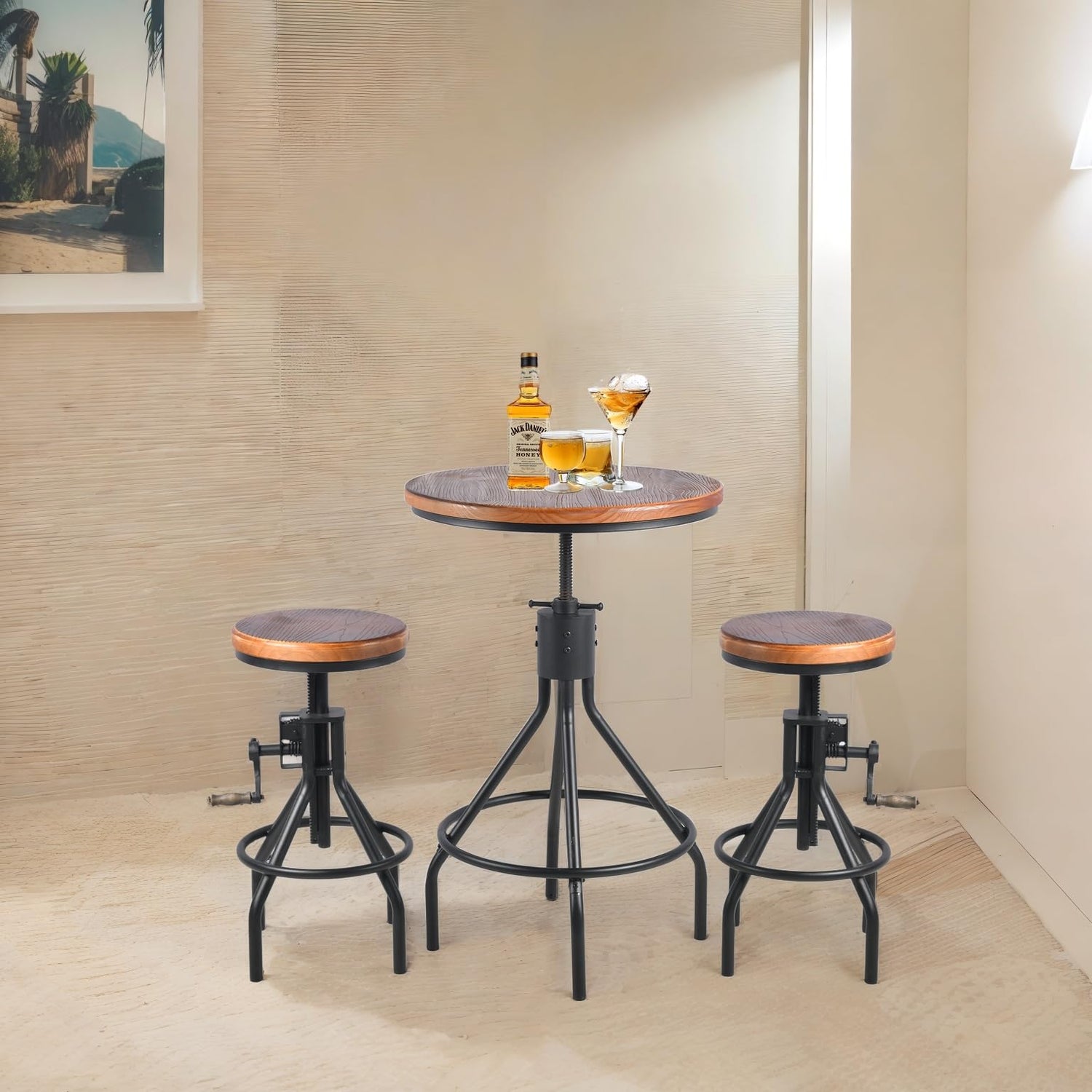 BOKKOLIK Industrial Bar Table, Counter Height 30-36inch Height Adjustable, Swivel Wooden Tabletop, Farmhouse Dinner Table for Home Kitchen,Vintage Display Stand
