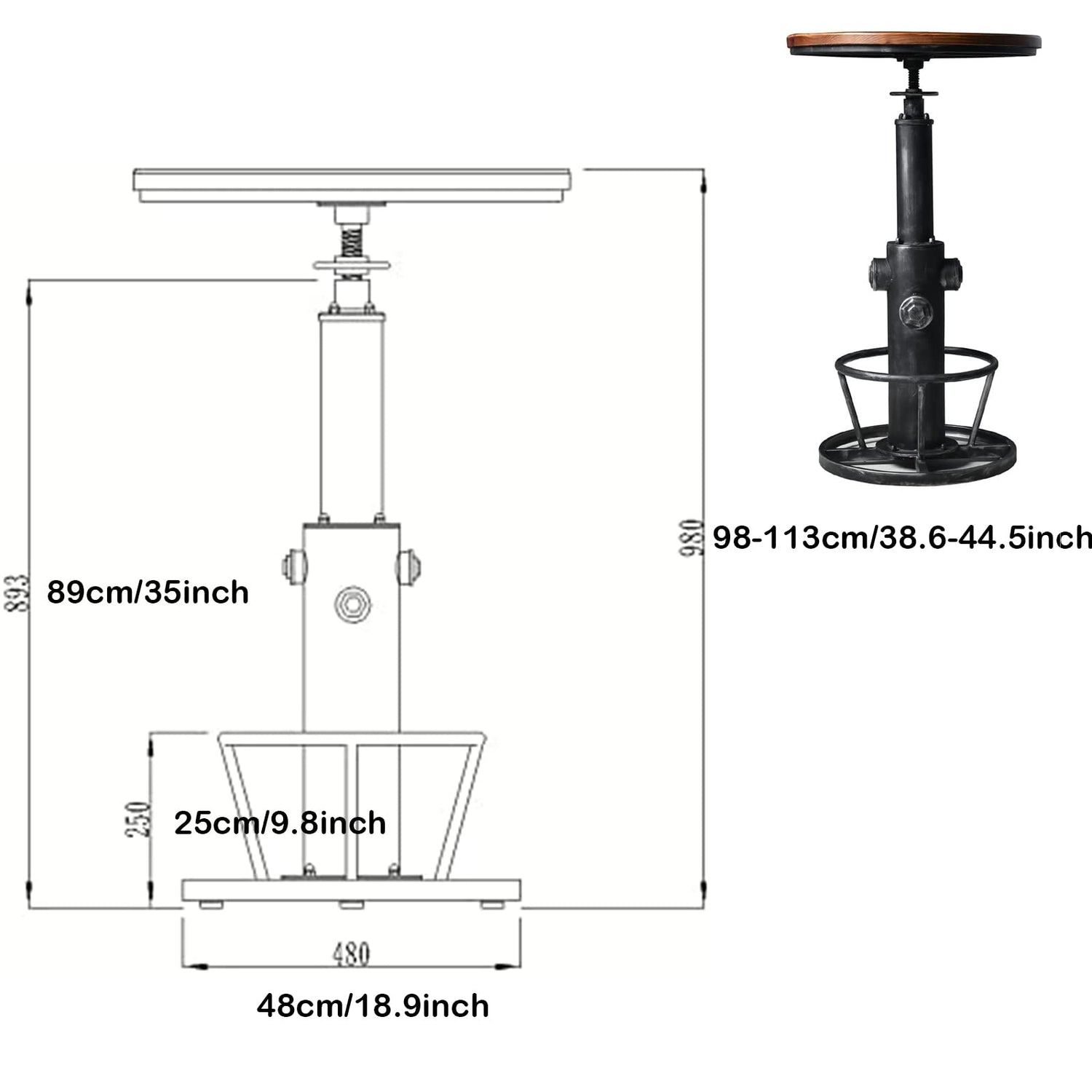 - Dimension- Size of Wood (Approx.):23.63 Inch x 1.2 Inch(Dia.xThickness);Adjustable Height:from 38.6 Inch to 44.4 Inch;Width of Base:18.9 Inch.