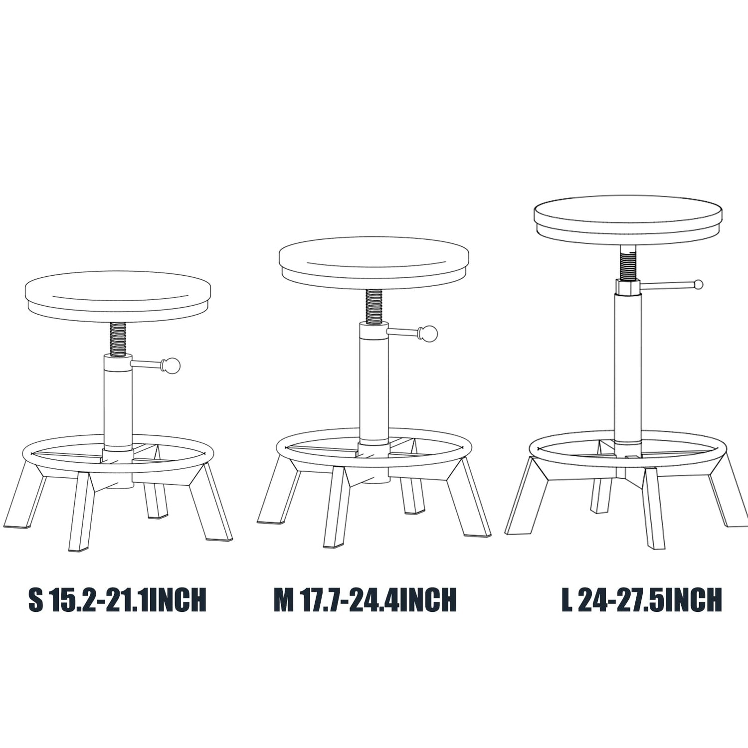 BOKKOLIK Set of 2-Industrial Bar Stool-Counter Height Chairs- Swivel Wooden Seat- Adjustable 17.7-24inch