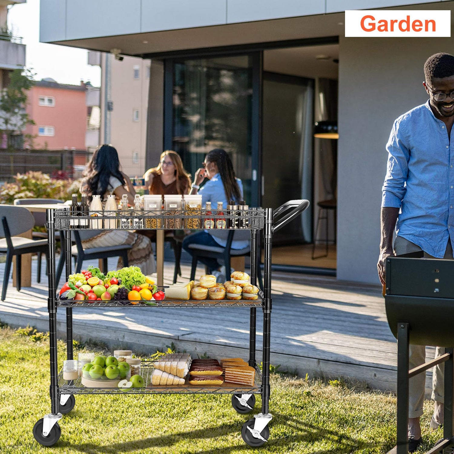 BolDuck Heavy Duty Utility Cart on Wheels,990Lbs Capacity 3 Tier Rolling Carts with Wheels,Kitchen Cart on Wheels with Storage,Commercial Grade Metal Serving Cart with Wire Shelving &Handle Bar,Black